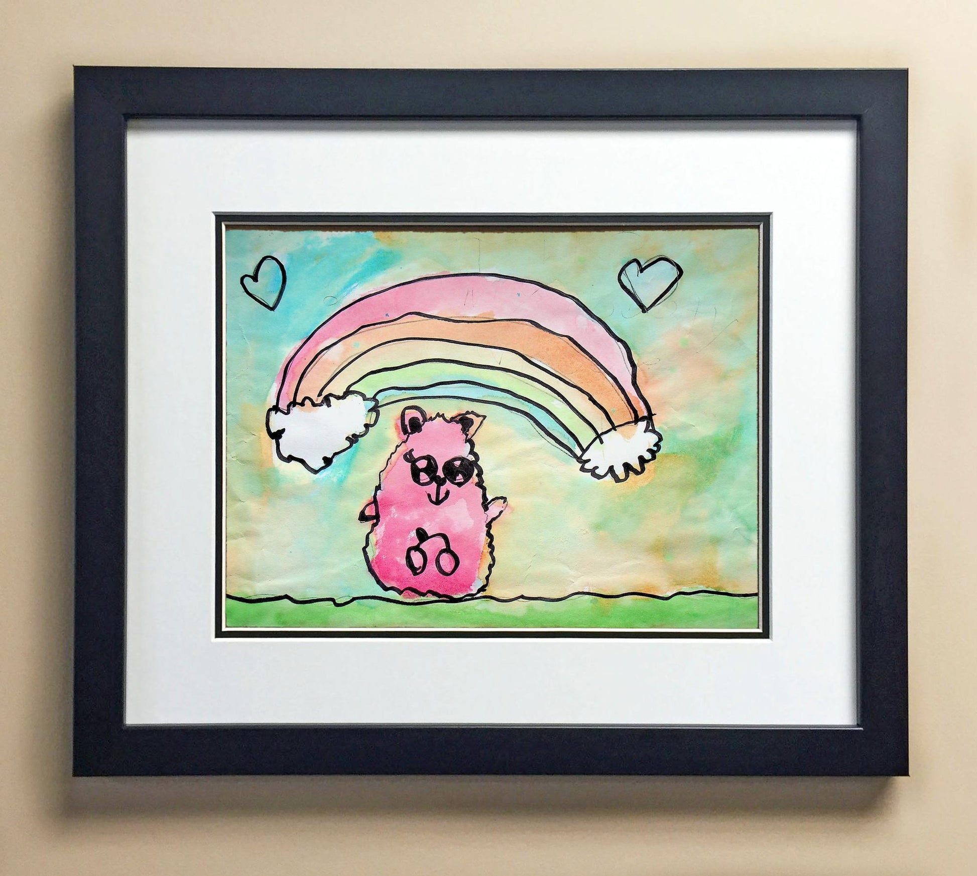 Included with the purchase is the Students Artwork, Frame, double matboard, shatter proof plexiglass, and a ready to hang backerboard with turnbuttons