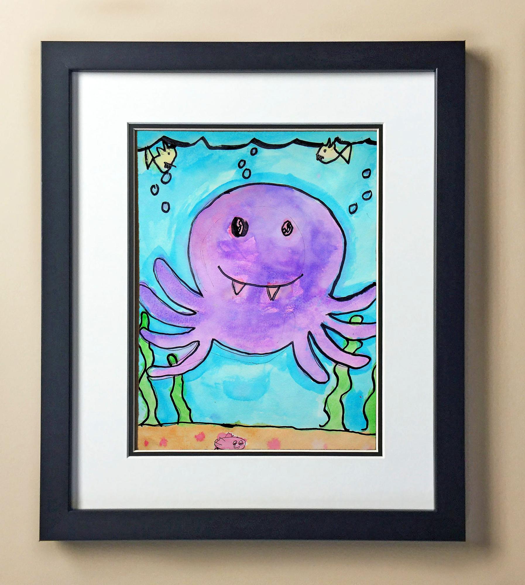 Included with the purchase is the Students Artwork, Frame, double matboard, shatter proof plexiglass, and a ready to hang backerboard with turnbuttons