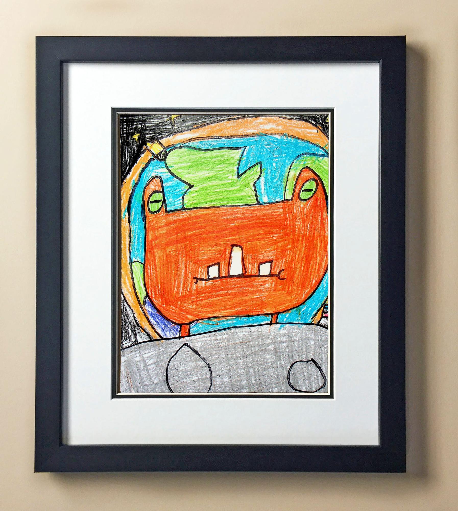 Included with the purchase is the Students Artwork, Frame, double matboard, shatter proof plexiglass, and a ready to hang backerboard with turnbuttons