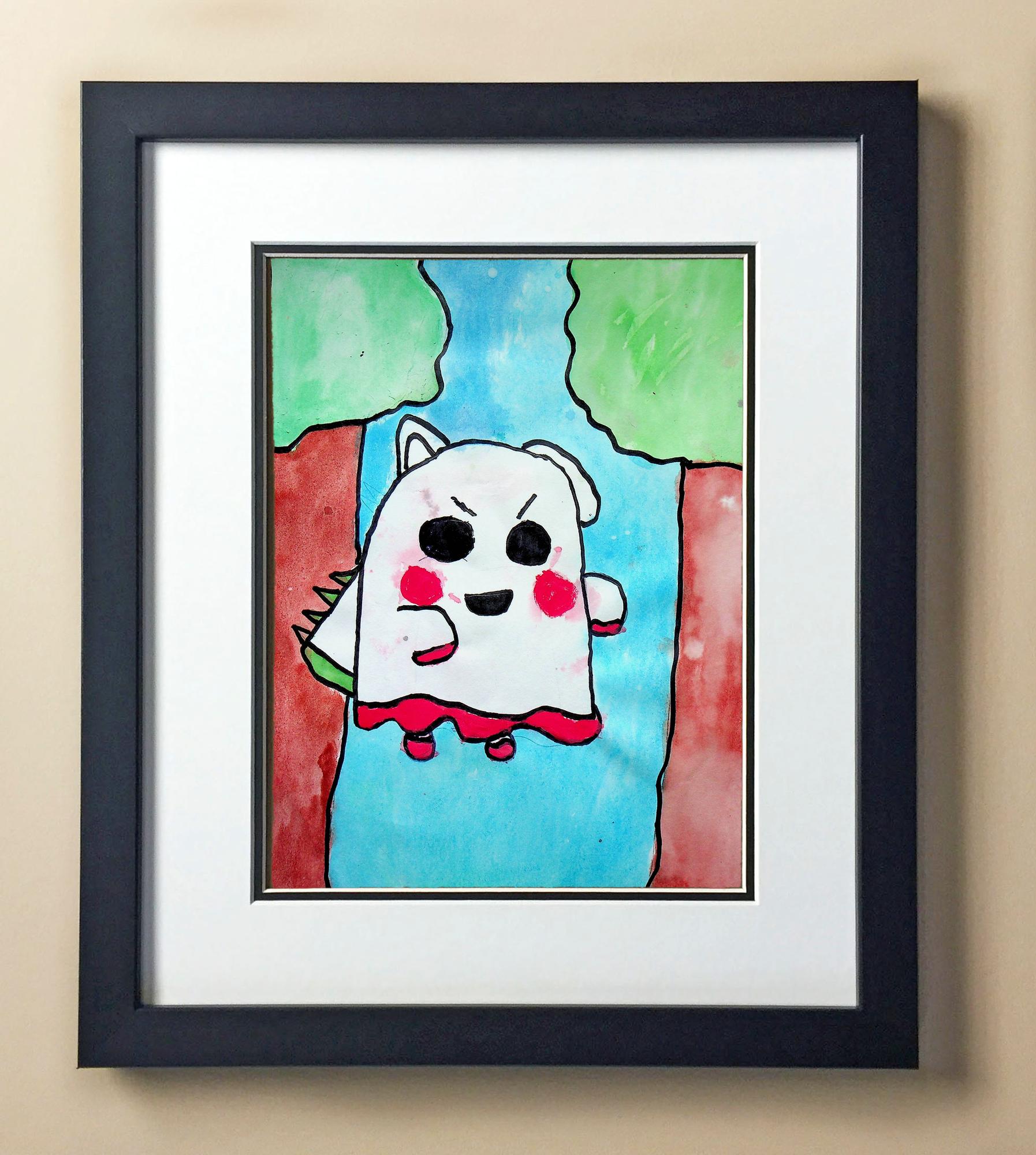 Included with the purchase is the Students Artwork, Frame, double matboard, shatter proof plexiglass, and a ready to hang backerboard with turnbuttons