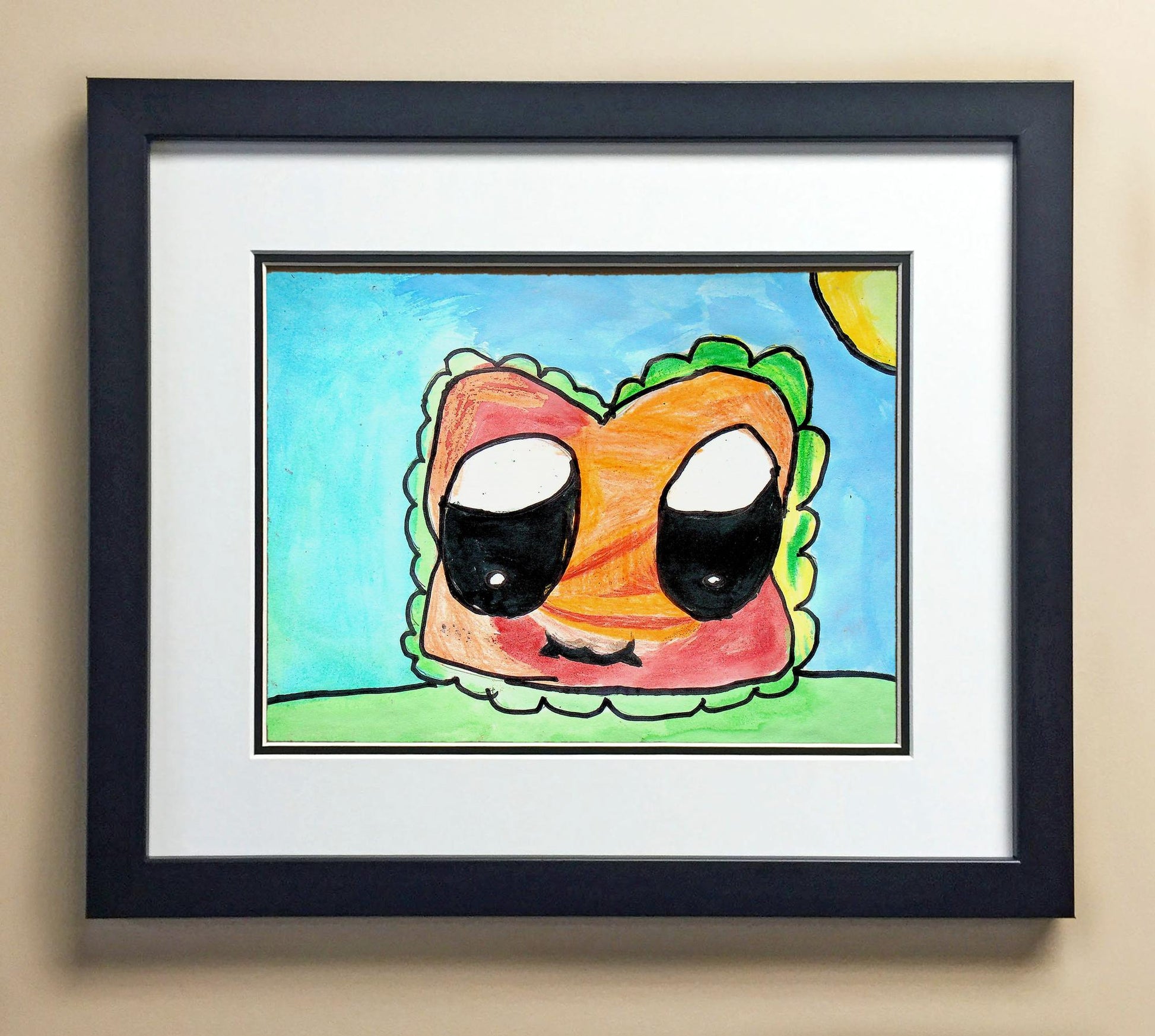 Included with the purchase is the Students Artwork, Frame, double matboard, shatter proof plexiglass, and a ready to hang backerboard with turnbuttons
