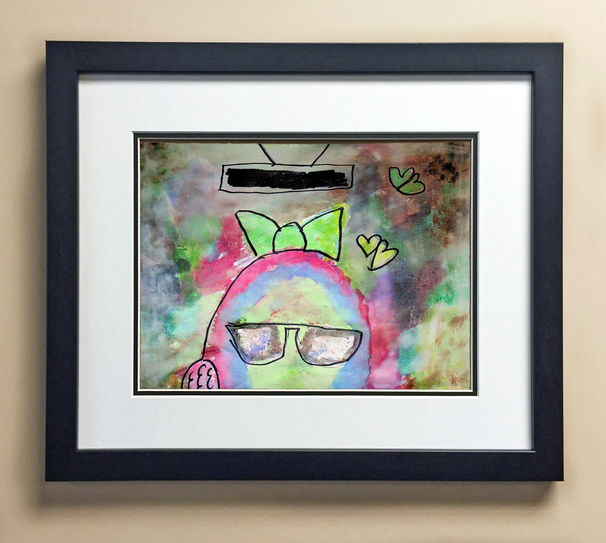 Included with the purchase is the Students Artwork, Frame, double matboard, shatter proof plexiglass, and a ready to hang backerboard with turnbuttons