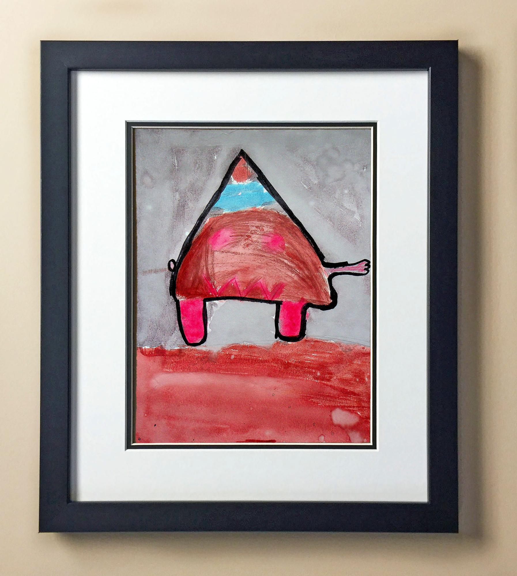Included with the purchase is the Students Artwork, Frame, double matboard, shatter proof plexiglass, and a ready to hang backerboard with turnbuttons