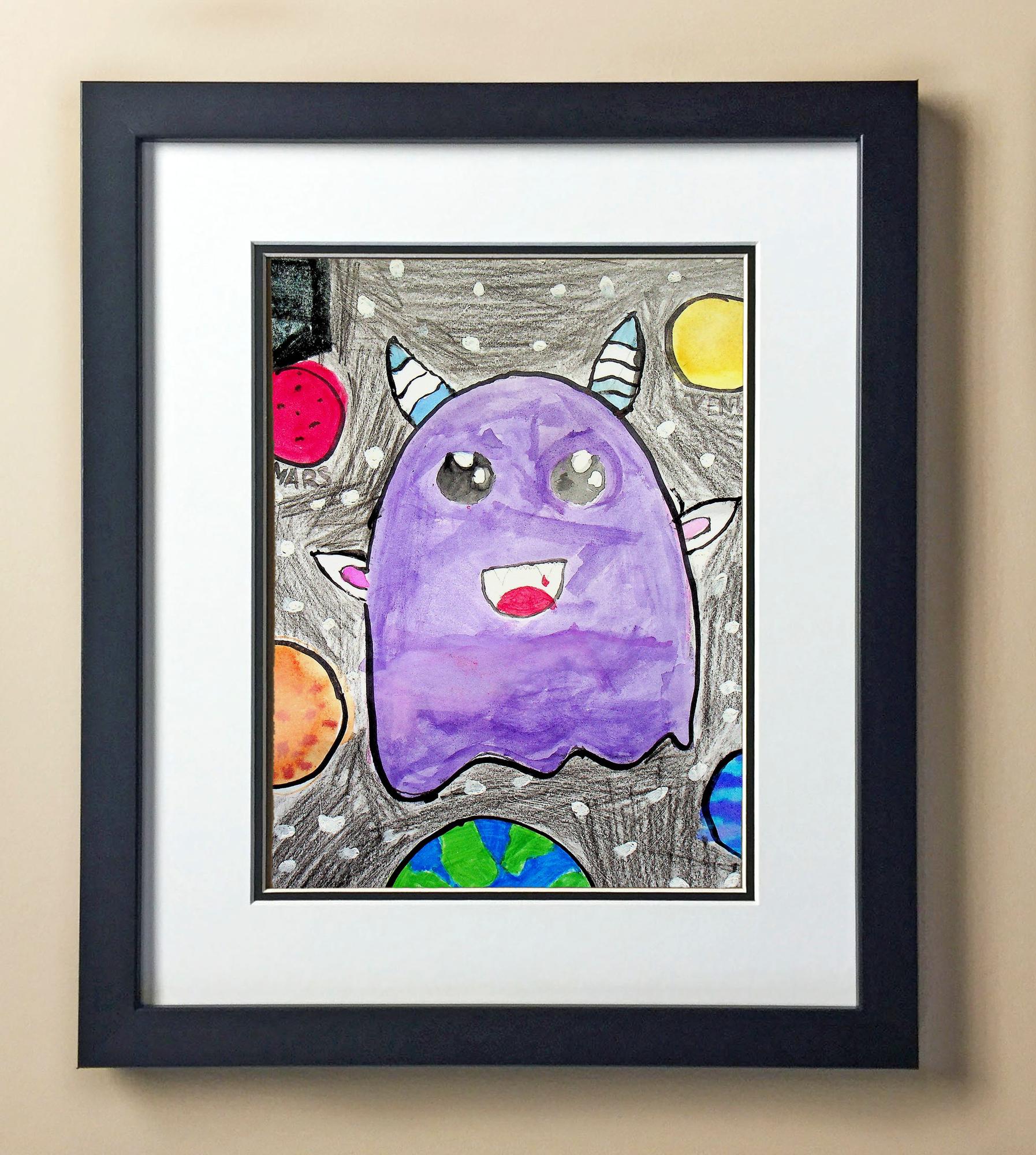 Included with the purchase is the Students Artwork, Frame, double matboard, shatter proof plexiglass, and a ready to hang backerboard with turnbuttons