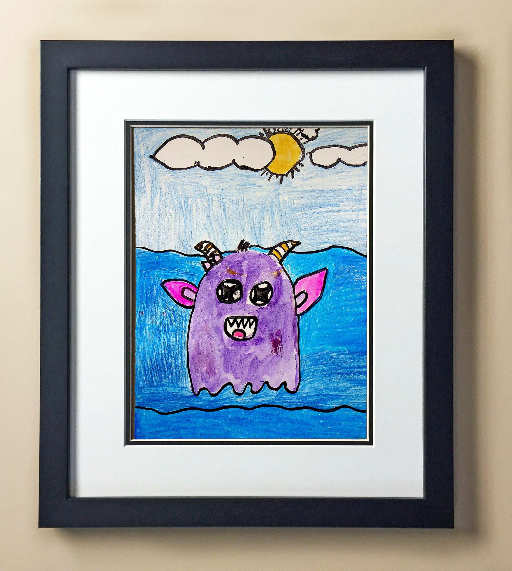 Included with the purchase is the Students Artwork, Frame, double matboard, shatter proof plexiglass, and a ready to hang backerboard with turnbuttons