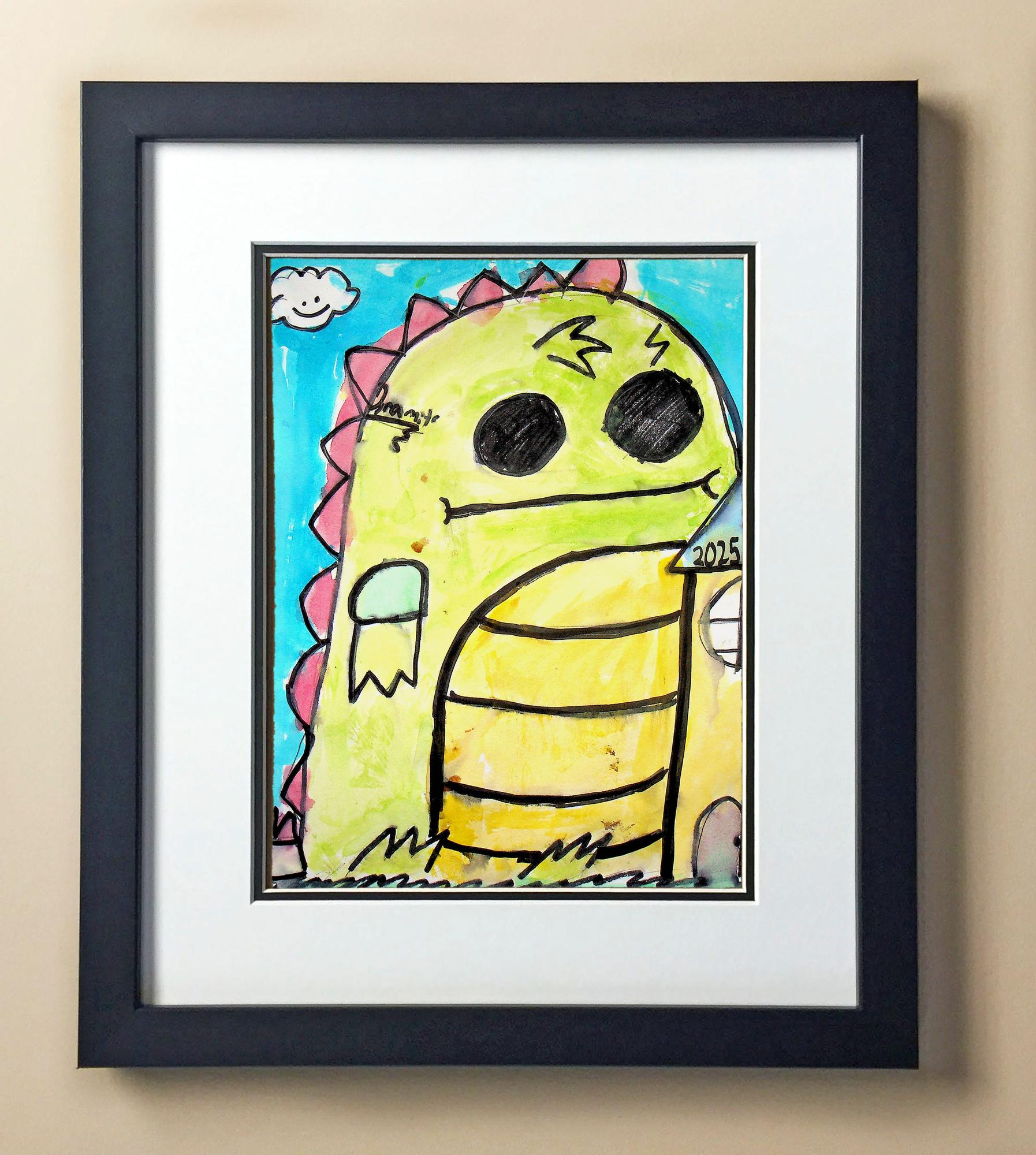 Included with the purchase is the Students Artwork, Frame, double matboard, shatter proof plexiglass, and a ready to hang backerboard with turnbuttons