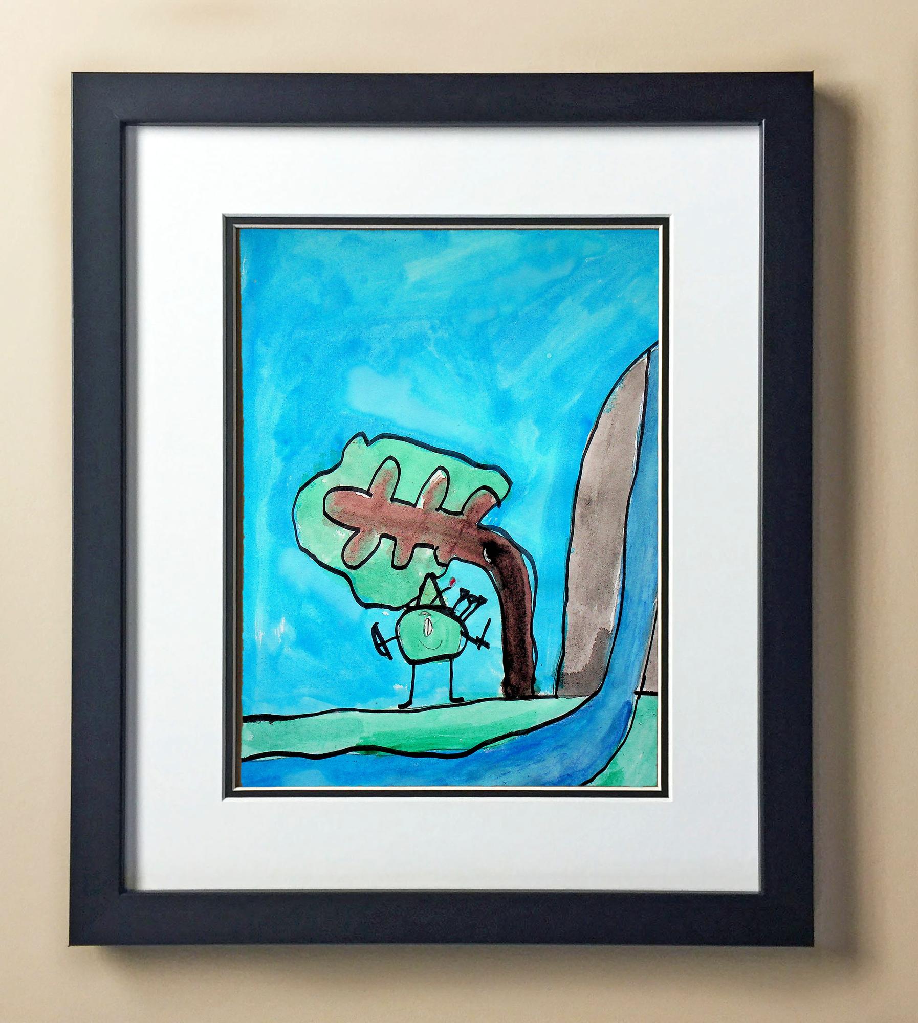 Included with the purchase is the Students Artwork, Frame, double matboard, shatter proof plexiglass, and a ready to hang backerboard with turnbuttons