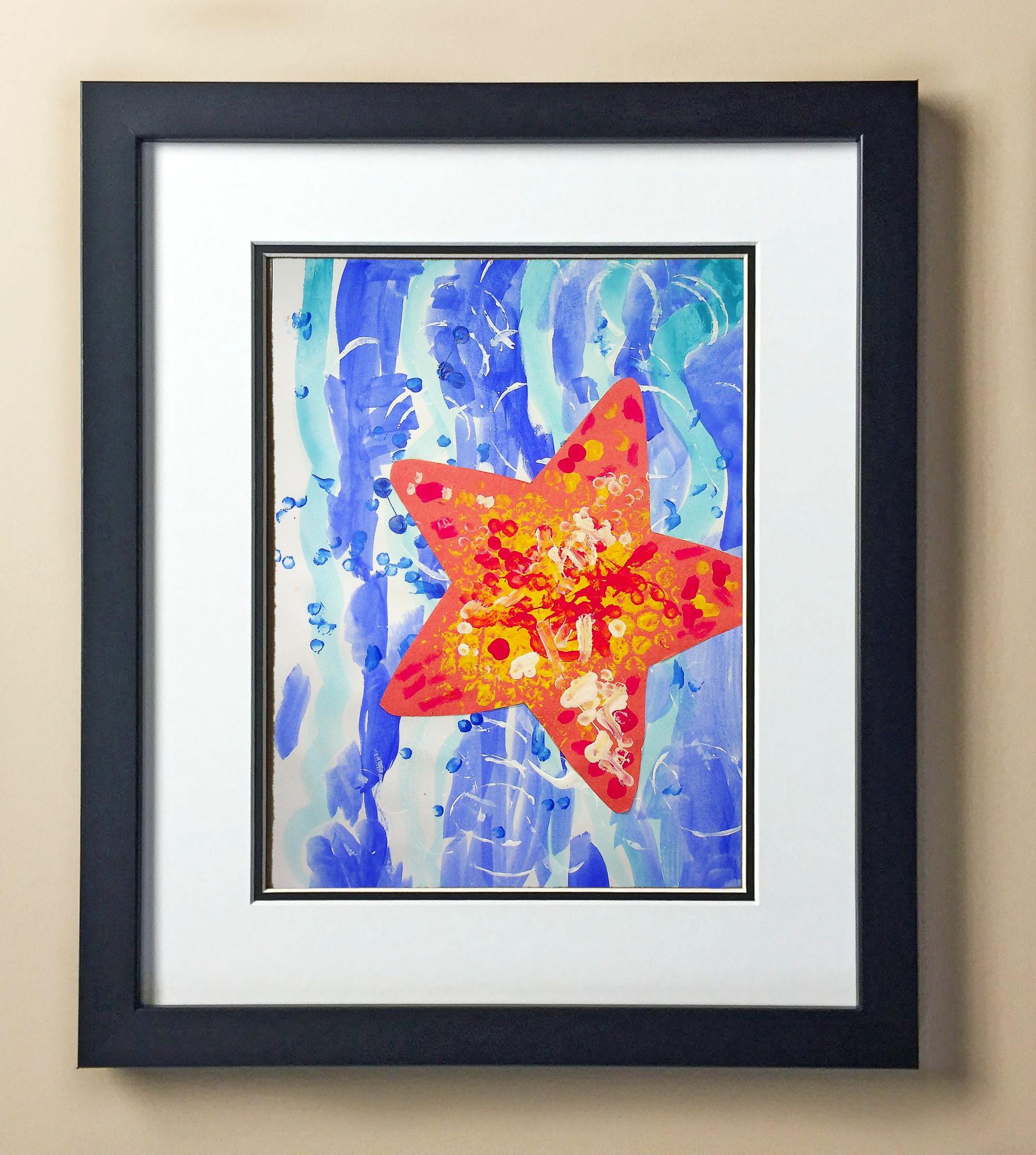 Included with the purchase is the Students Artwork, Frame, double matboard, shatter proof plexiglass, and a ready to hang backerboard with turnbuttons