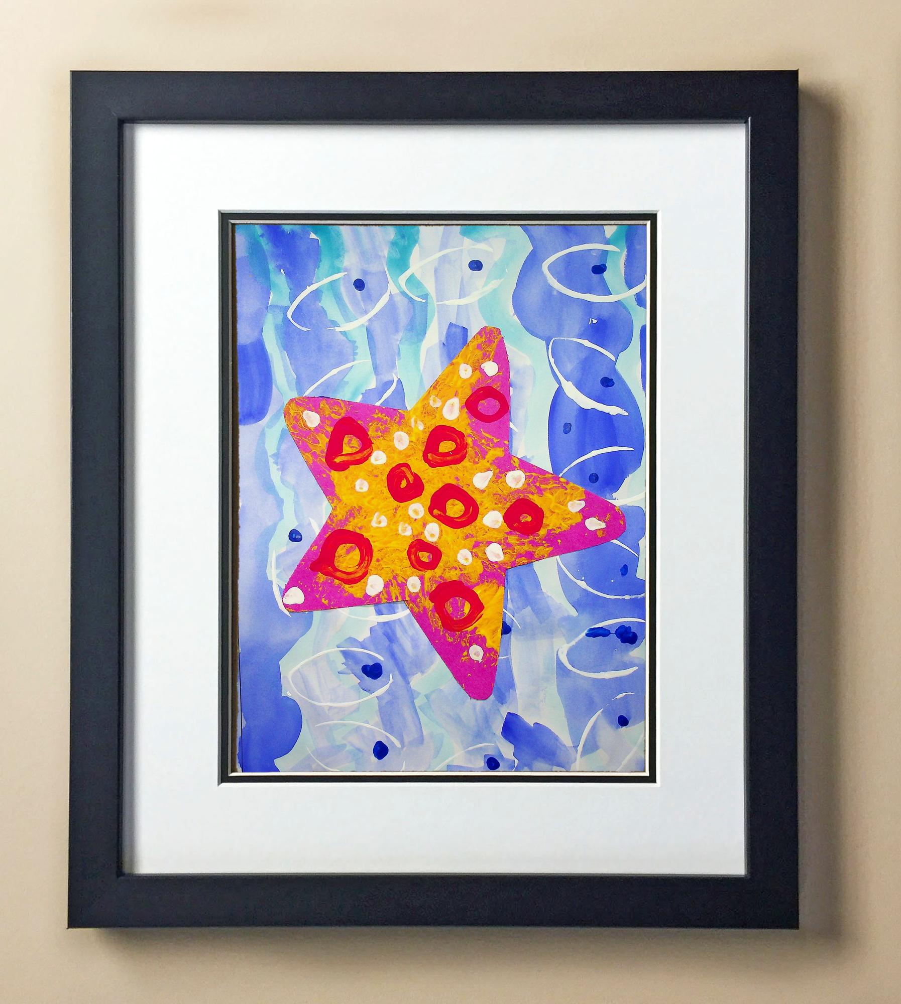 Included with the purchase is the Students Artwork, Frame, double matboard, shatter proof plexiglass, and a ready to hang backerboard with turnbuttons