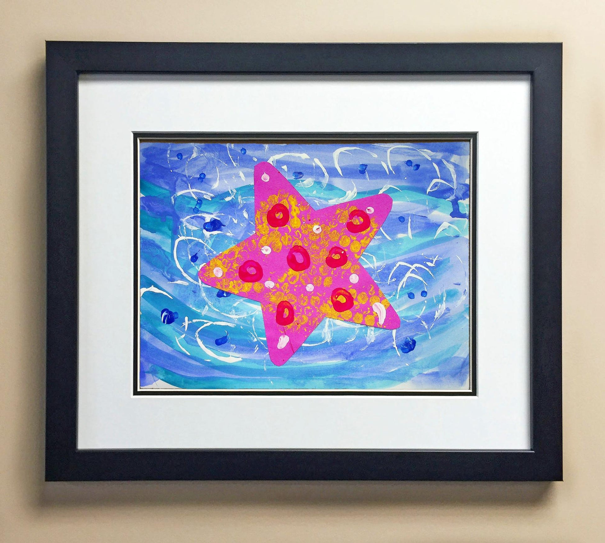 Included with the purchase is the Students Artwork, Frame, double matboard, shatter proof plexiglass, and a ready to hang backerboard with turnbuttons