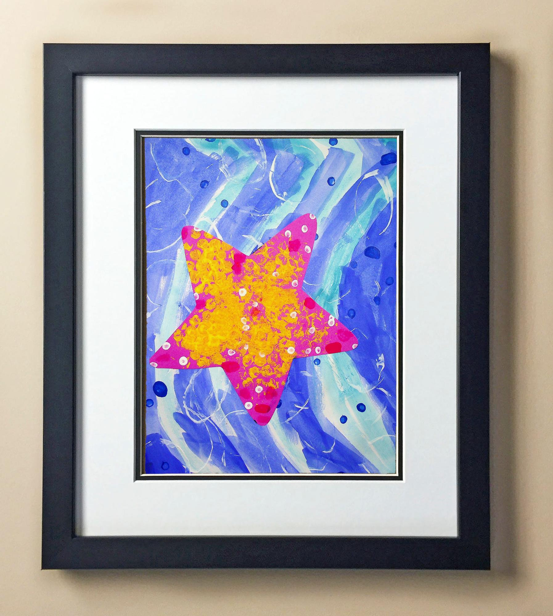 Included with the purchase is the Students Artwork, Frame, double matboard, shatter proof plexiglass, and a ready to hang backerboard with turnbuttons