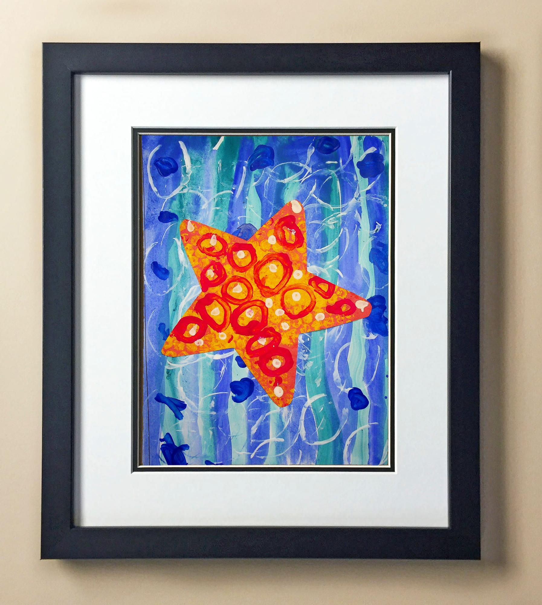 Included with the purchase is the Students Artwork, Frame, double matboard, shatter proof plexiglass, and a ready to hang backerboard with turnbuttons