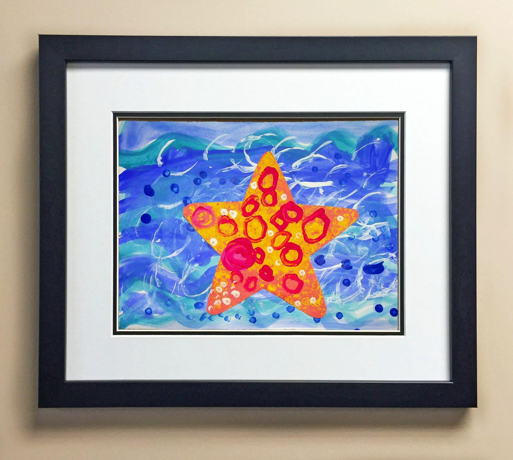 Included with the purchase is the Students Artwork, Frame, double matboard, shatter proof plexiglass, and a ready to hang backerboard with turnbuttons