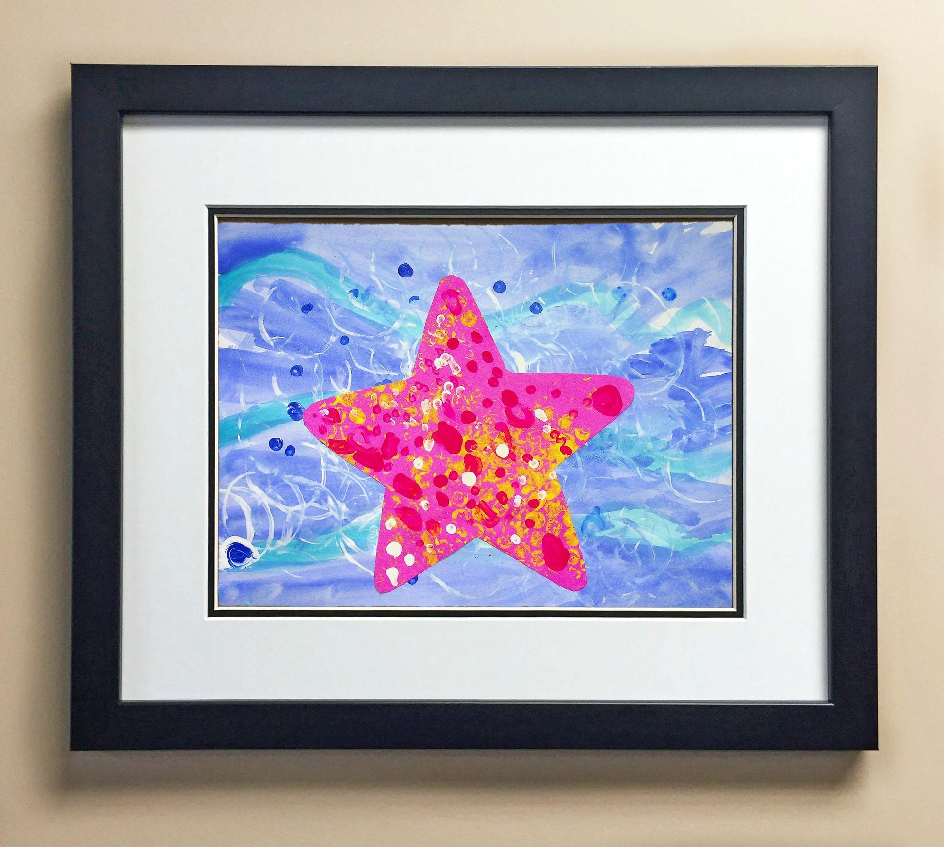 Included with the purchase is the Students Artwork, Frame, double matboard, shatter proof plexiglass, and a ready to hang backerboard with turnbuttons
