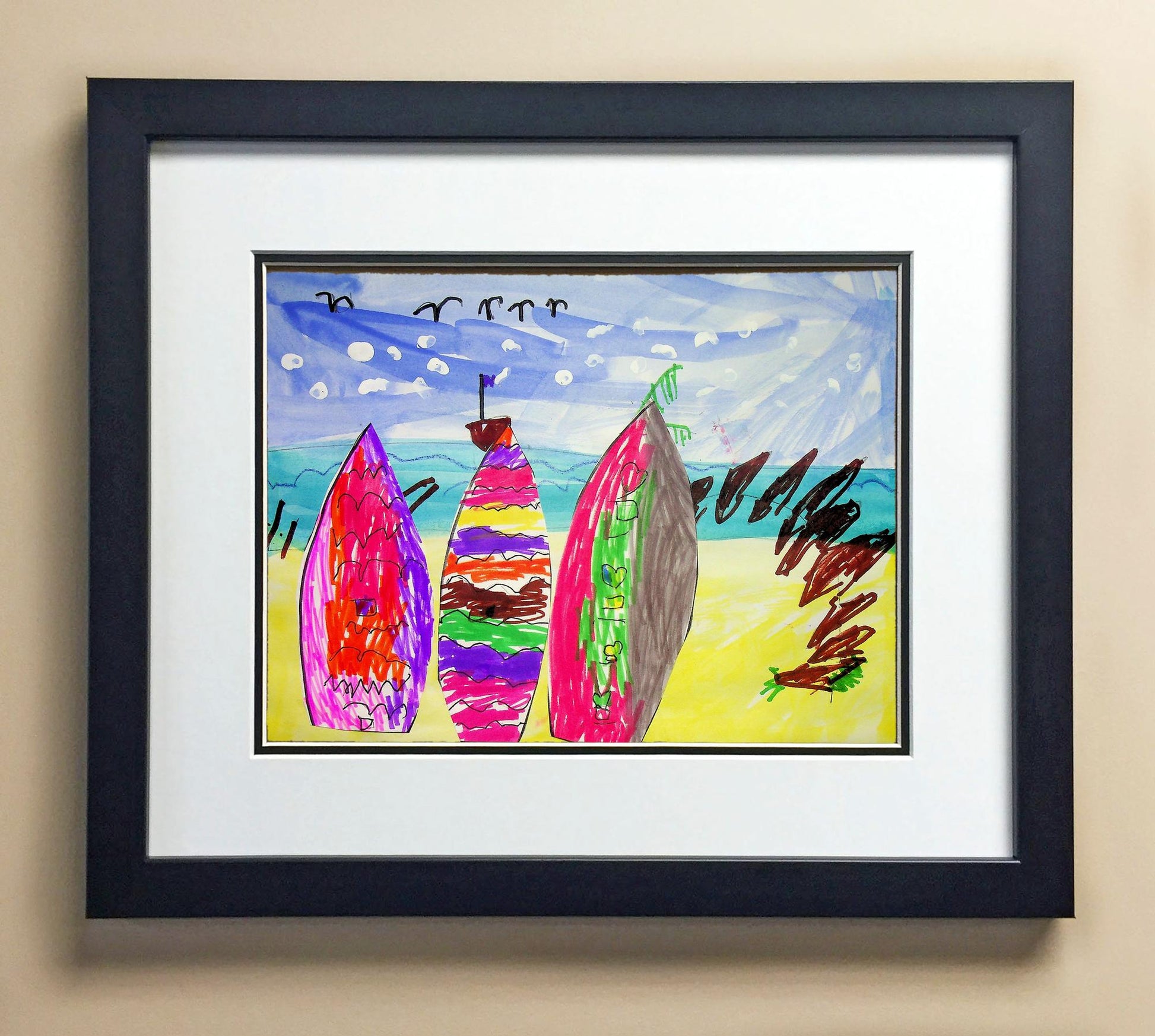 Included with the purchase is the Students Artwork, Frame, double matboard, shatter proof plexiglass, and a ready to hang backerboard with turnbuttons