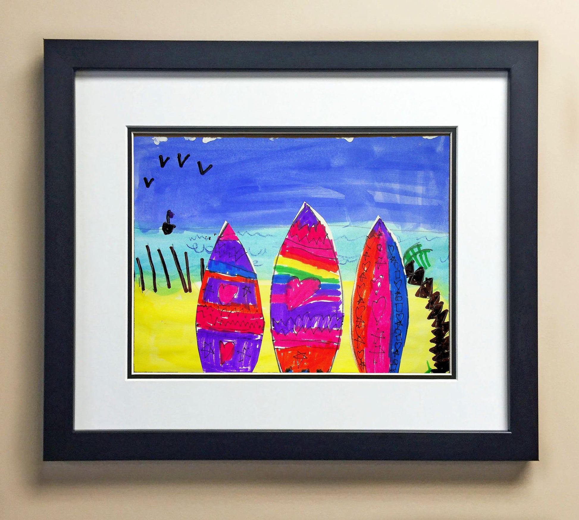 Included with the purchase is the Students Artwork, Frame, double matboard, shatter proof plexiglass, and a ready to hang backerboard with turnbuttons