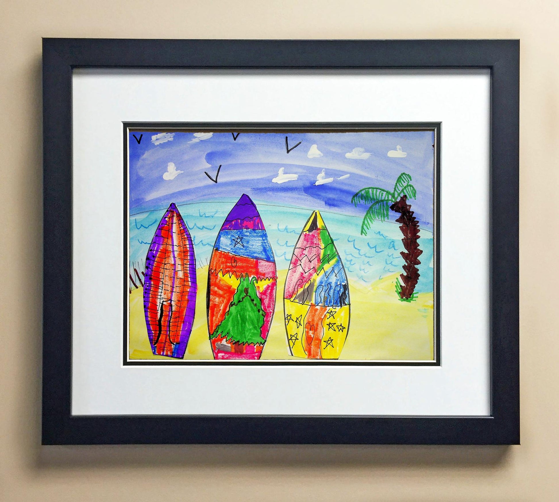 Included with the purchase is the Students Artwork, Frame, double matboard, shatter proof plexiglass, and a ready to hang backerboard with turnbuttons