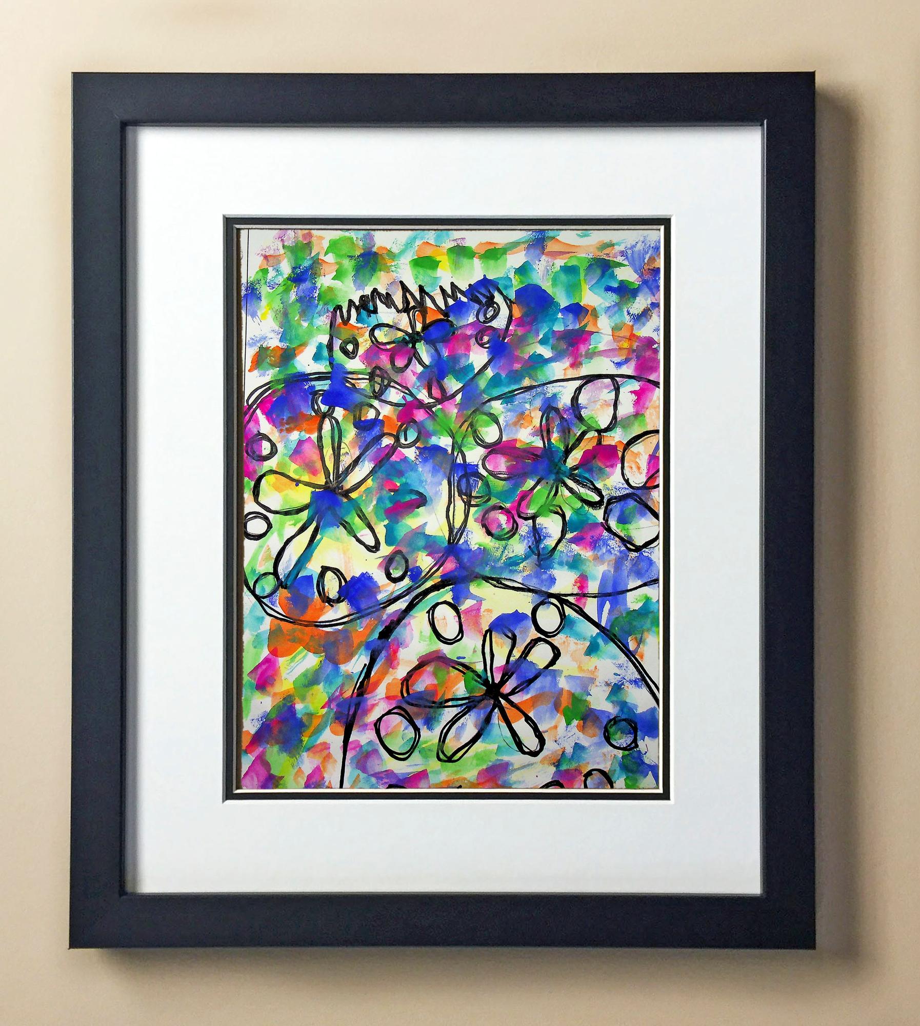 Included with the purchase is the Students Artwork, Frame, double matboard, shatter proof plexiglass, and a ready to hang backerboard with turnbuttons