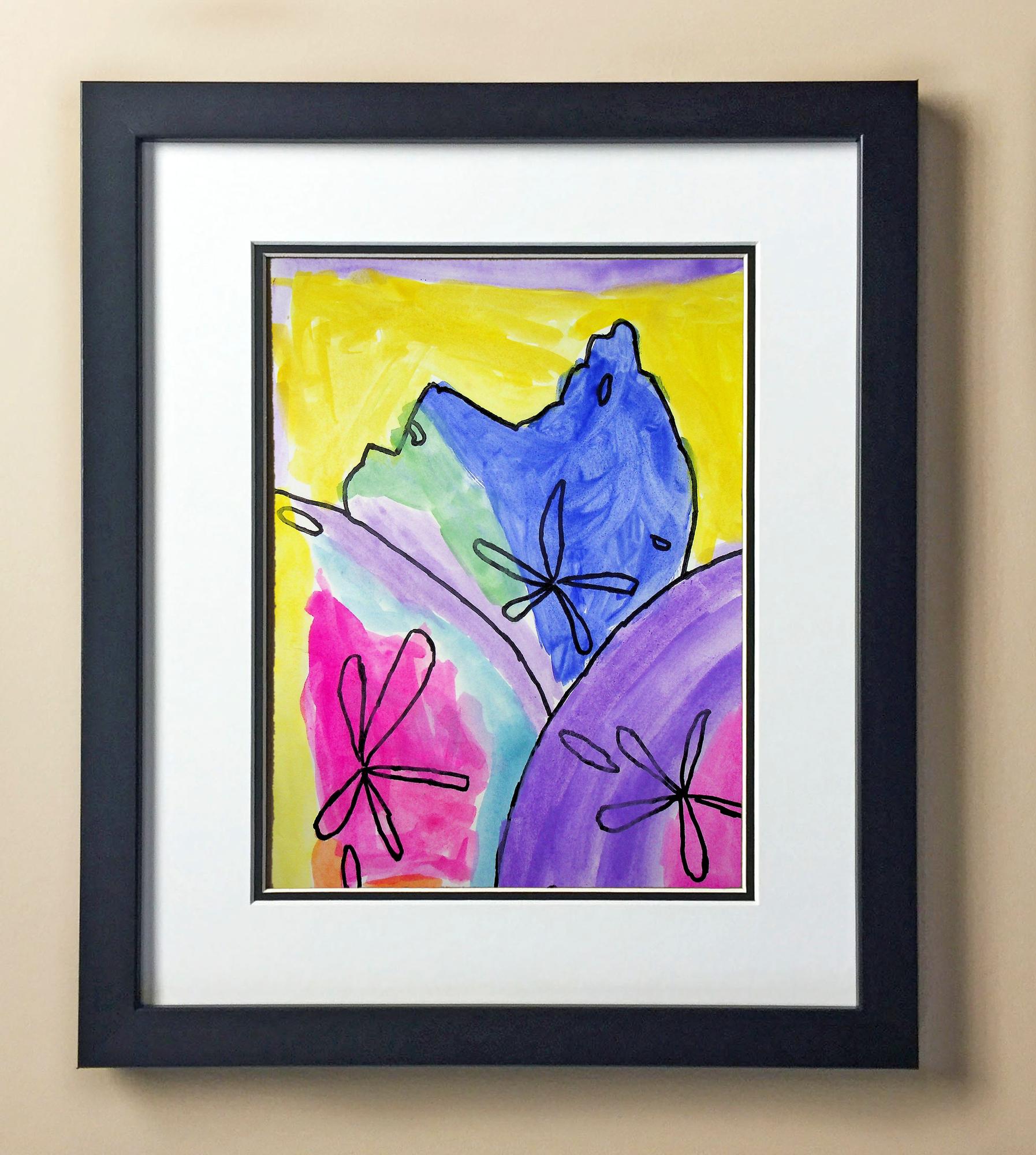 Included with the purchase is the Students Artwork, Frame, double matboard, shatter proof plexiglass, and a ready to hang backerboard with turnbuttons