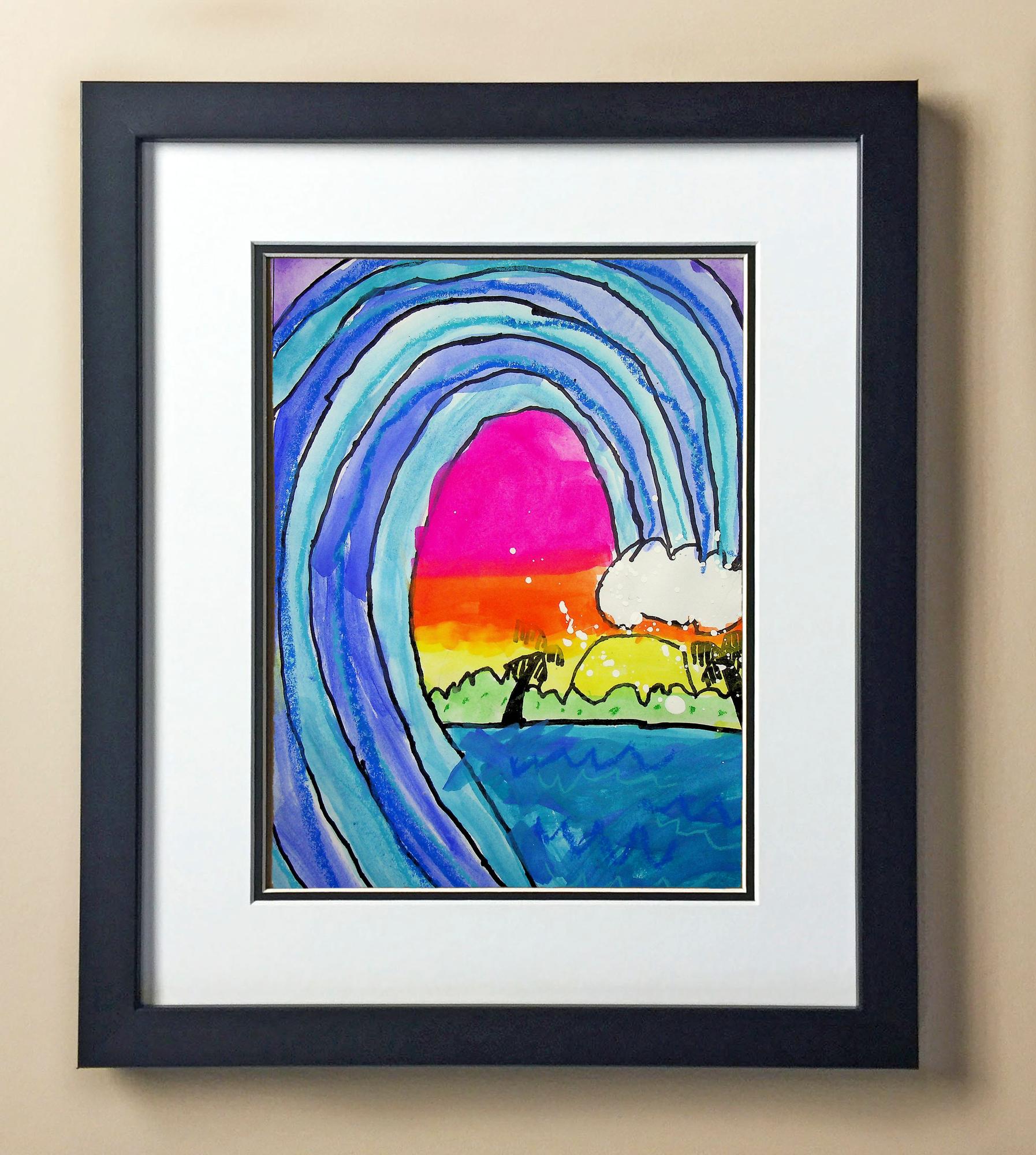 Included with the purchase is the Students Artwork, Frame, double matboard, shatter proof plexiglass, and a ready to hang backerboard with turnbuttons