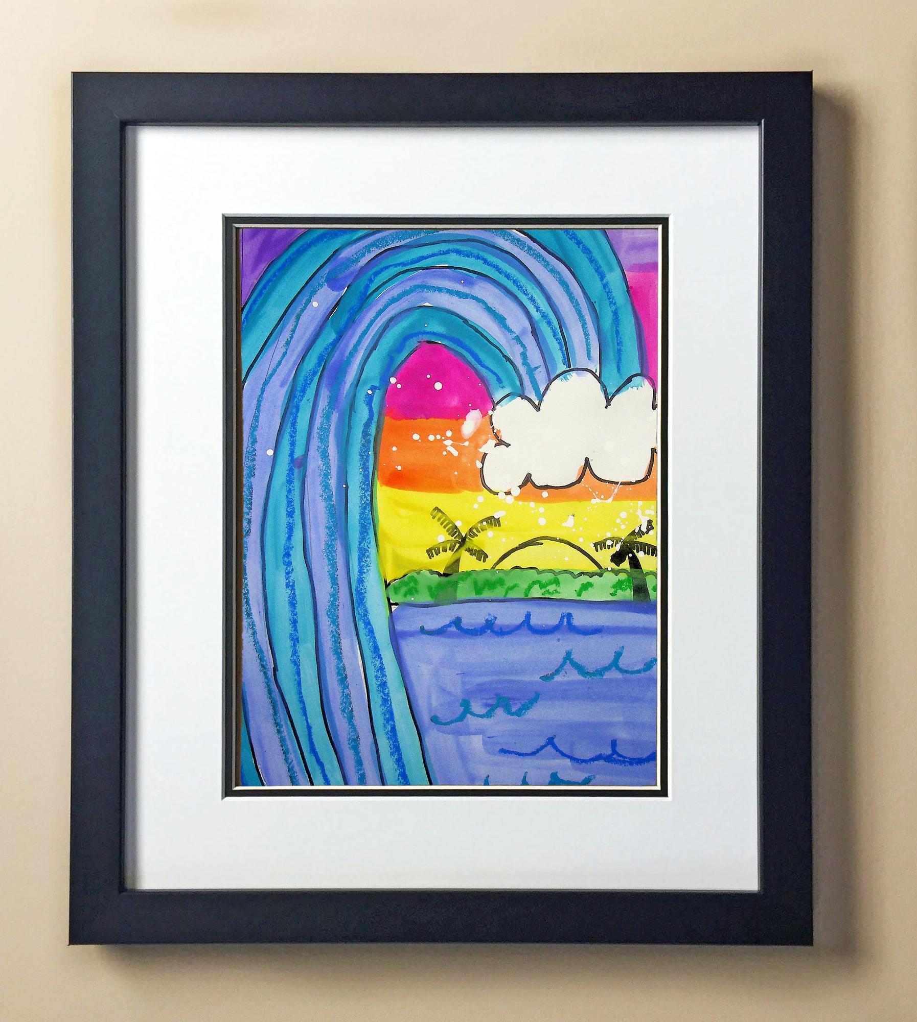 Included with the purchase is the Students Artwork, Frame, double matboard, shatter proof plexiglass, and a ready to hang backerboard with turnbuttons