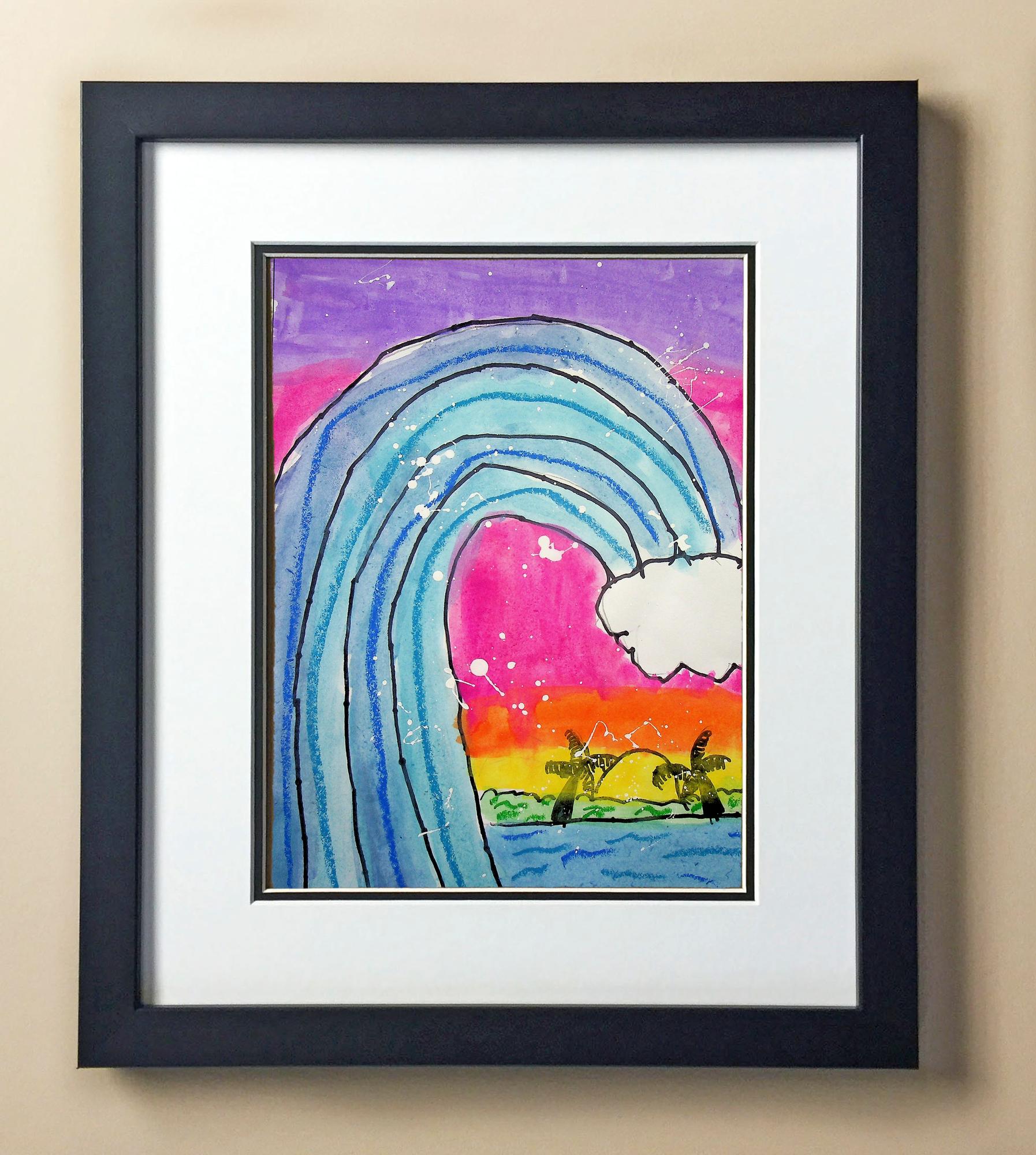 Included with the purchase is the Students Artwork, Frame, double matboard, shatter proof plexiglass, and a ready to hang backerboard with turnbuttons