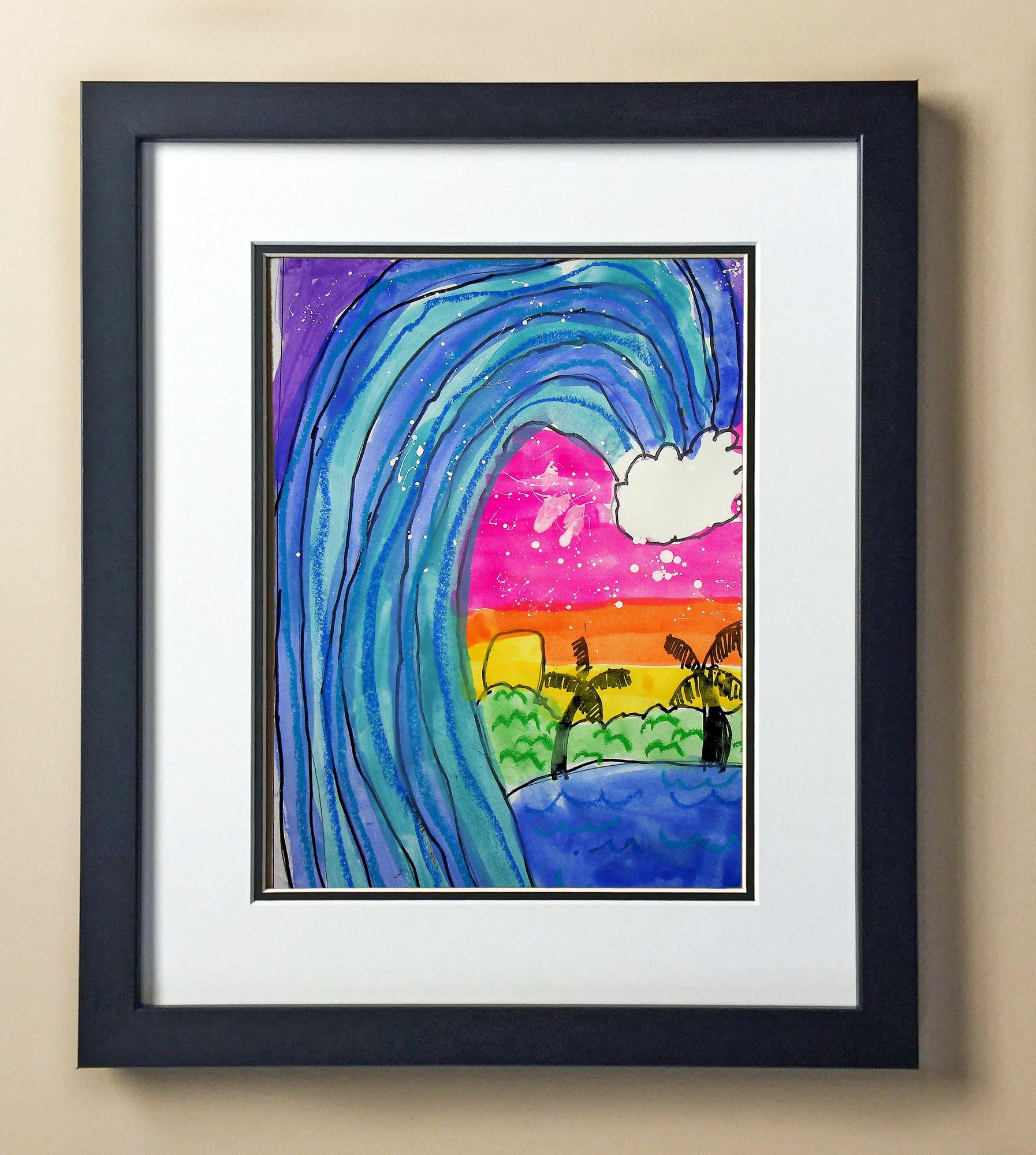Included with the purchase is the Students Artwork, Frame, double matboard, shatter proof plexiglass, and a ready to hang backerboard with turnbuttons