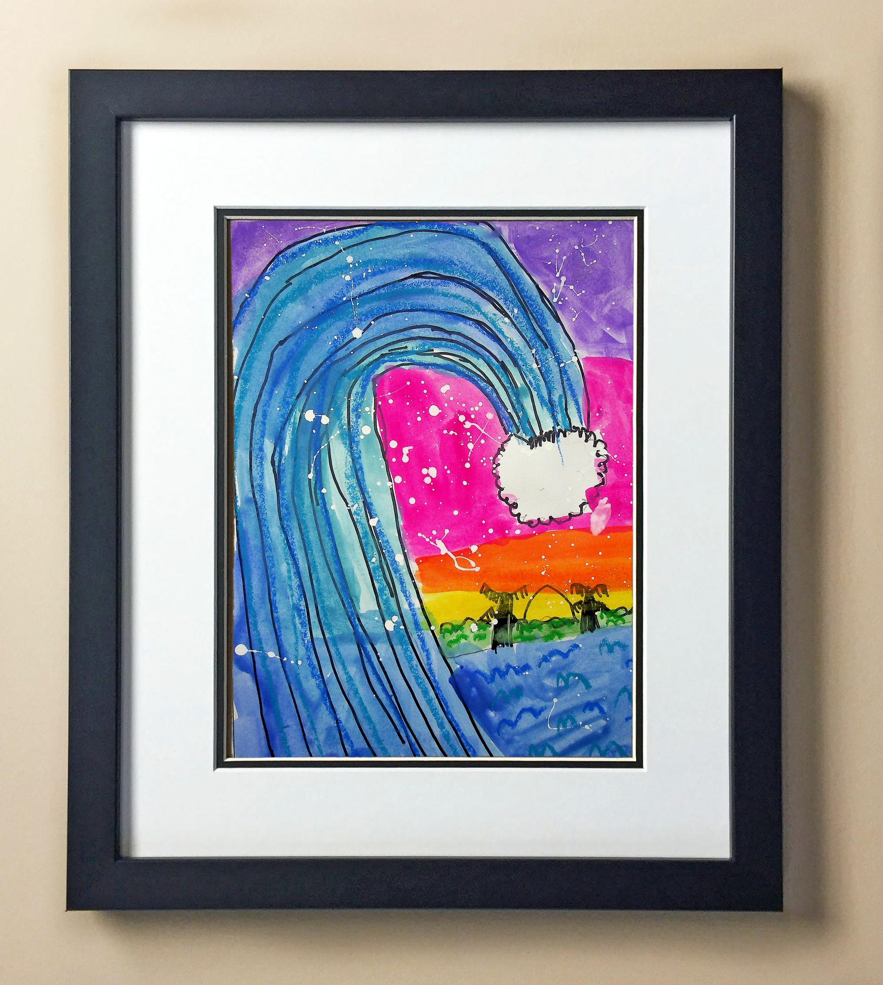 Included with the purchase is the Students Artwork, Frame, double matboard, shatter proof plexiglass, and a ready to hang backerboard with turnbuttons