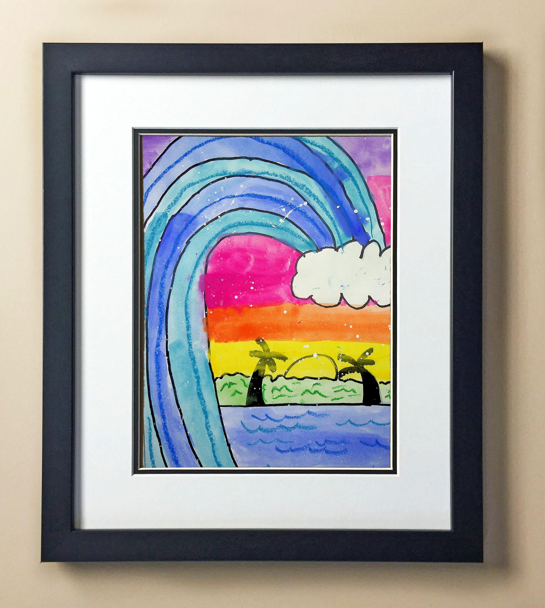 Included with the purchase is the Students Artwork, Frame, double matboard, shatter proof plexiglass, and a ready to hang backerboard with turnbuttons