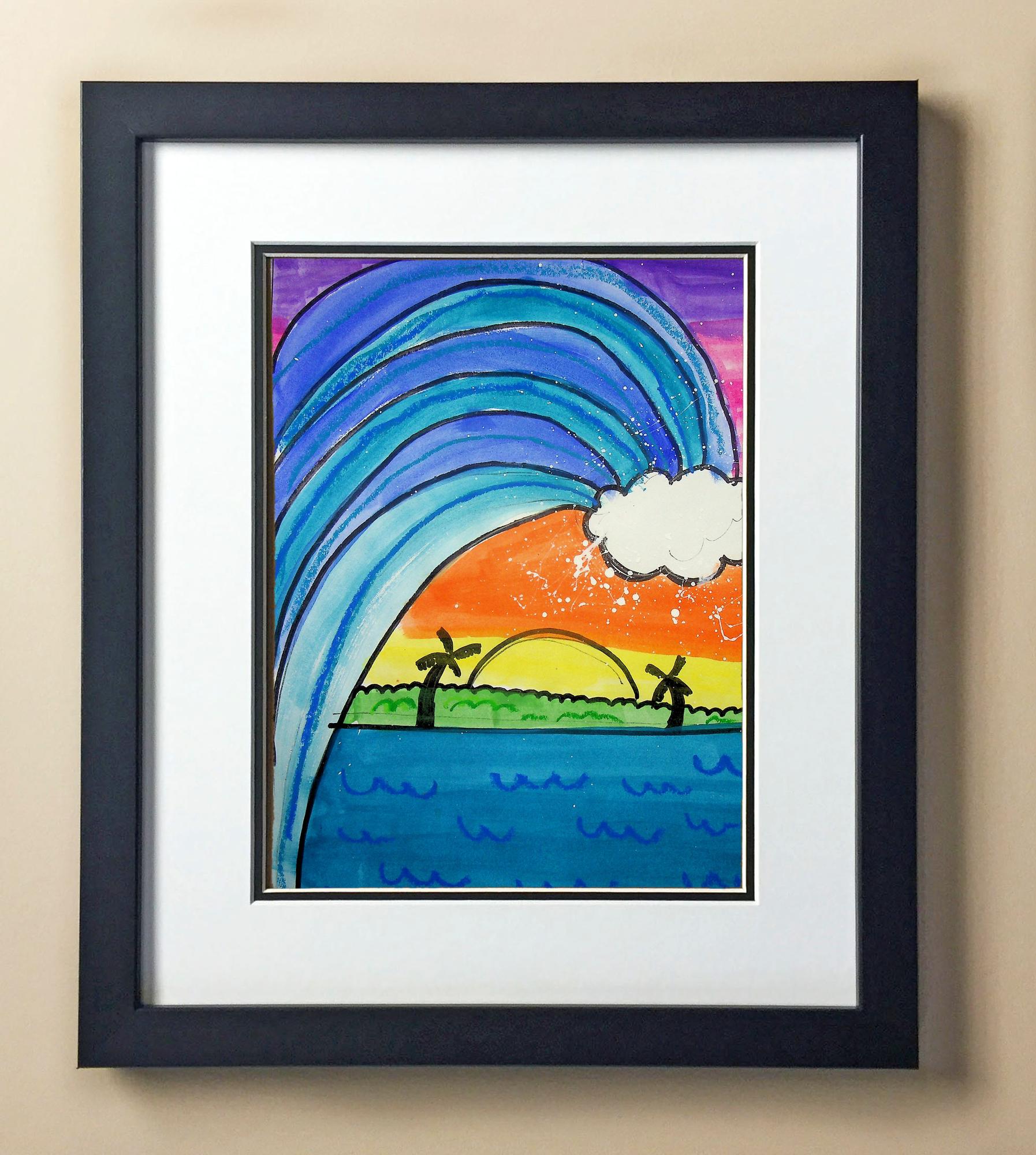 Included with the purchase is the Students Artwork, Frame, double matboard, shatter proof plexiglass, and a ready to hang backerboard with turnbuttons