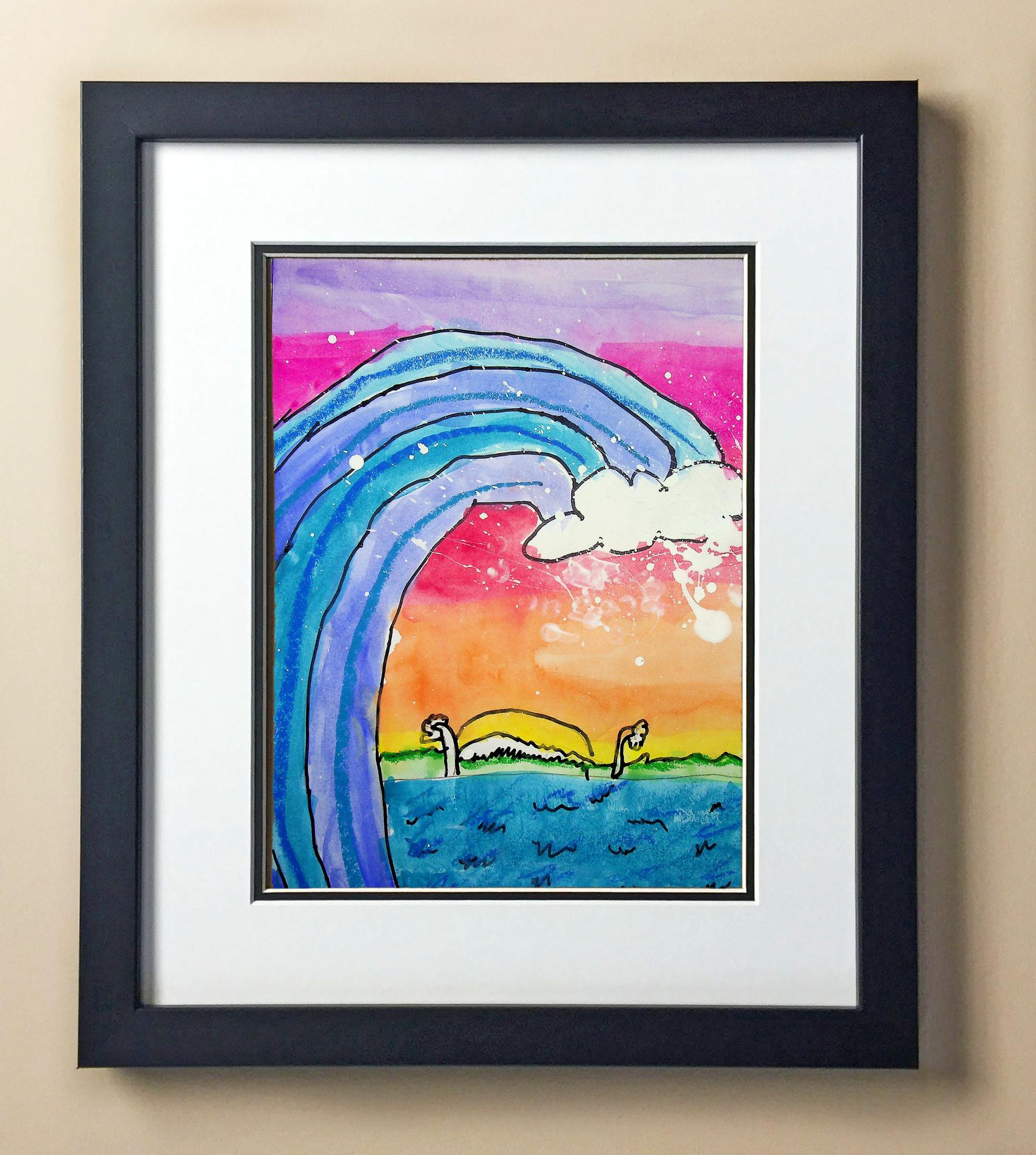 Included with the purchase is the Students Artwork, Frame, double matboard, shatter proof plexiglass, and a ready to hang backerboard with turnbuttons