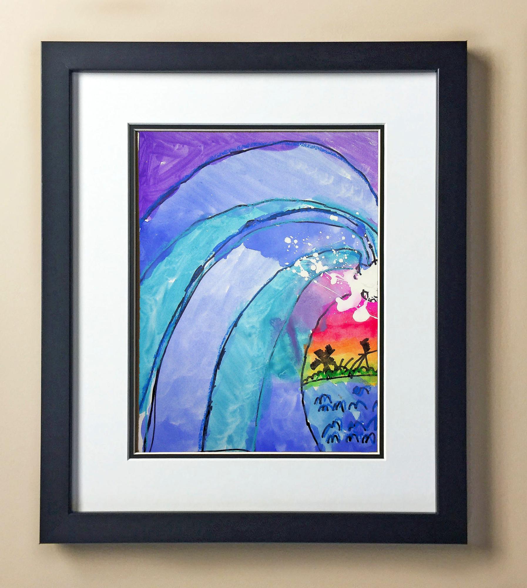 Included with the purchase is the Students Artwork, Frame, double matboard, shatter proof plexiglass, and a ready to hang backerboard with turnbuttons