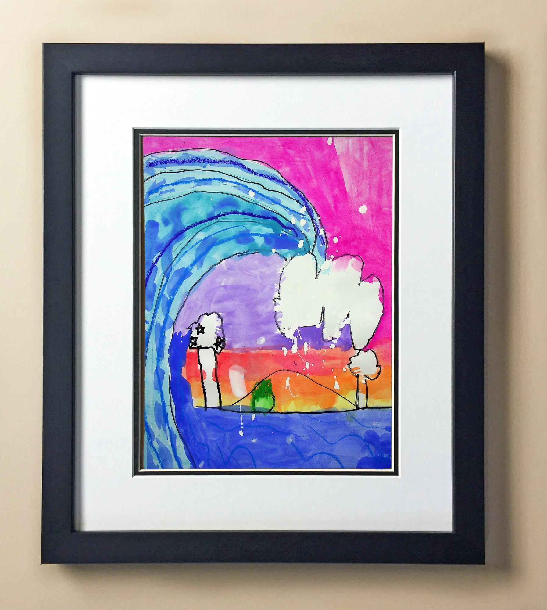 Included with the purchase is the Students Artwork, Frame, double matboard, shatter proof plexiglass, and a ready to hang backerboard with turnbuttons