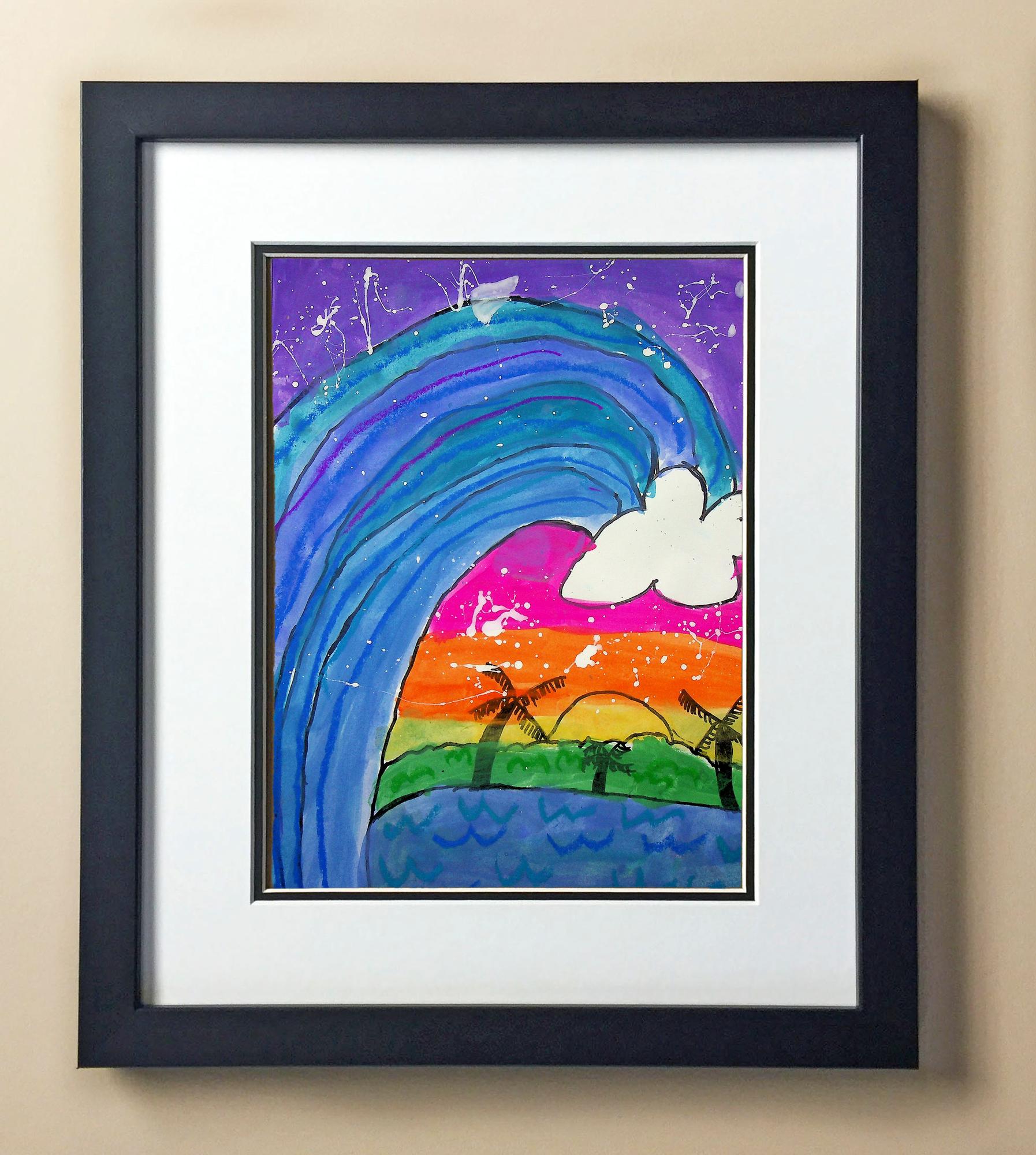 Included with the purchase is the Students Artwork, Frame, double matboard, shatter proof plexiglass, and a ready to hang backerboard with turnbuttons