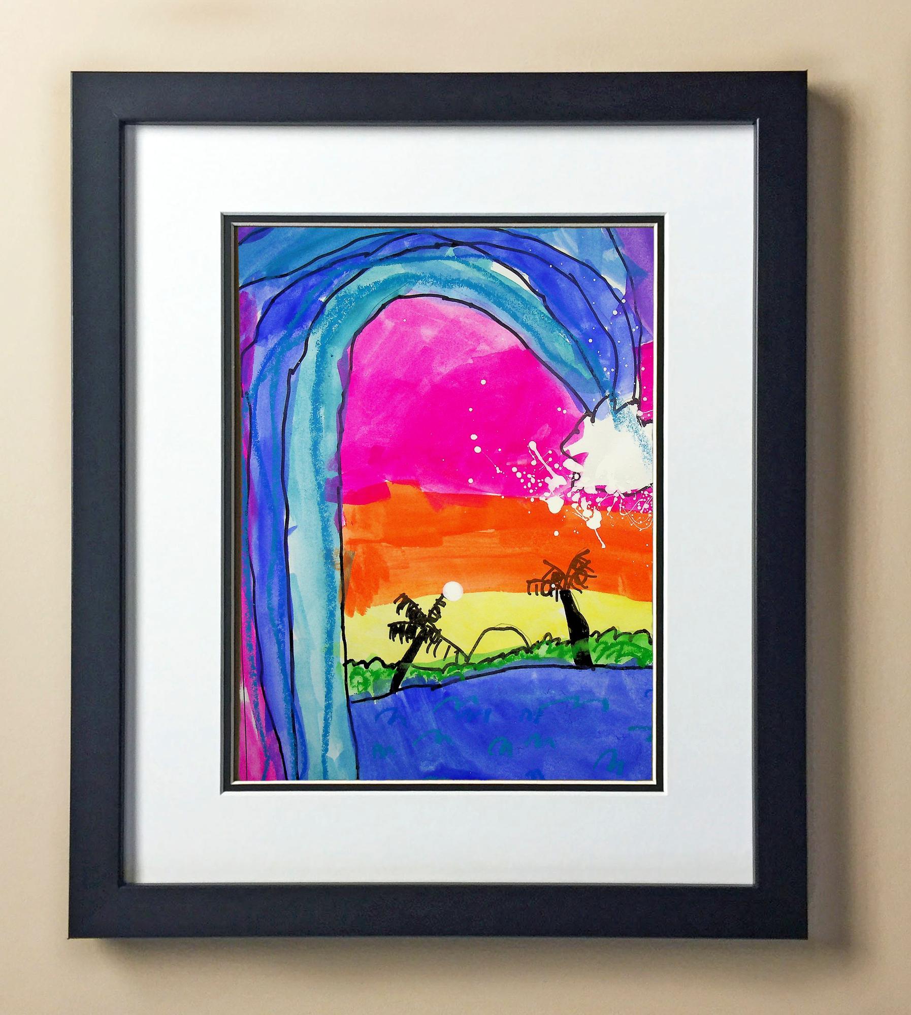 Included with the purchase is the Students Artwork, Frame, double matboard, shatter proof plexiglass, and a ready to hang backerboard with turnbuttons