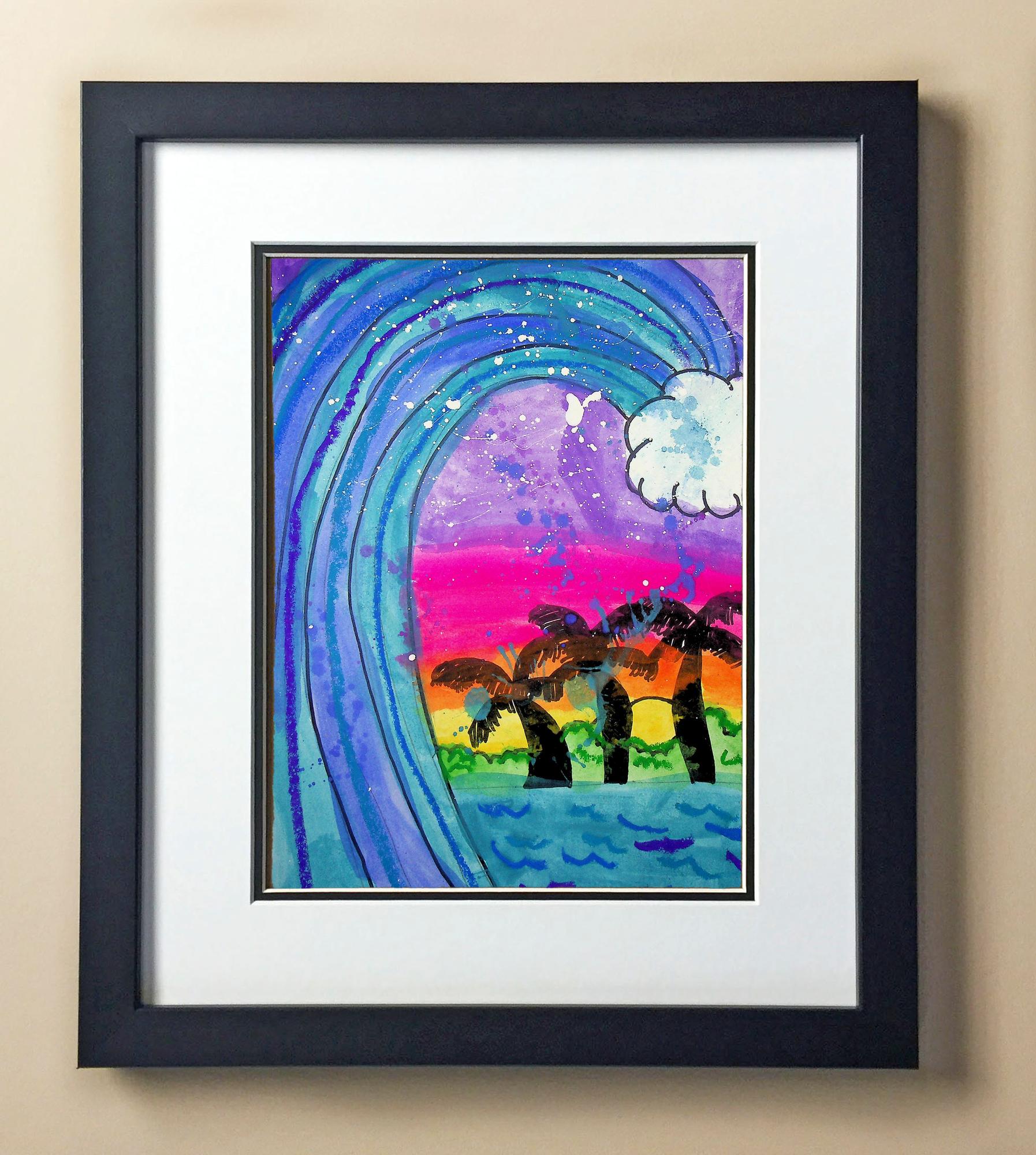 Included with the purchase is the Students Artwork, Frame, double matboard, shatter proof plexiglass, and a ready to hang backerboard with turnbuttons