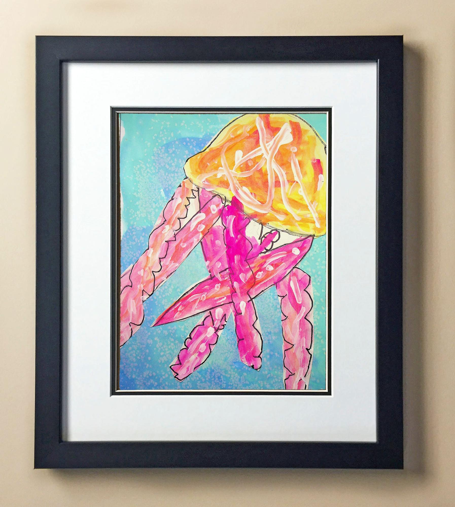 Included with the purchase is the Students Artwork, Frame, double matboard, shatter proof plexiglass, and a ready to hang backerboard with turnbuttons