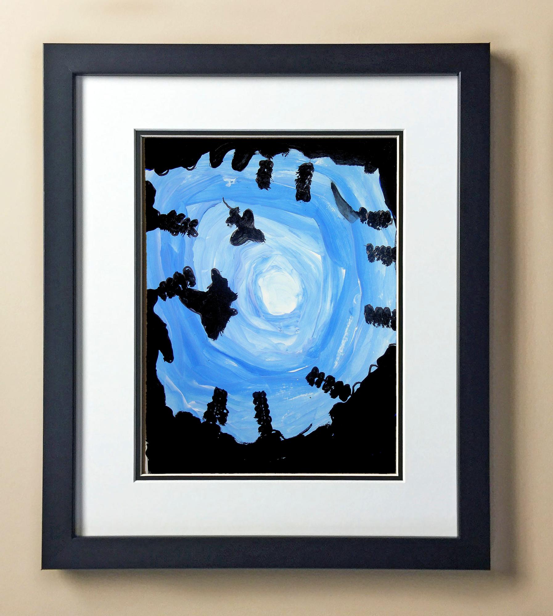Included with the purchase is the Students Artwork, Frame, double matboard, shatter proof plexiglass, and a ready to hang backerboard with turnbuttons