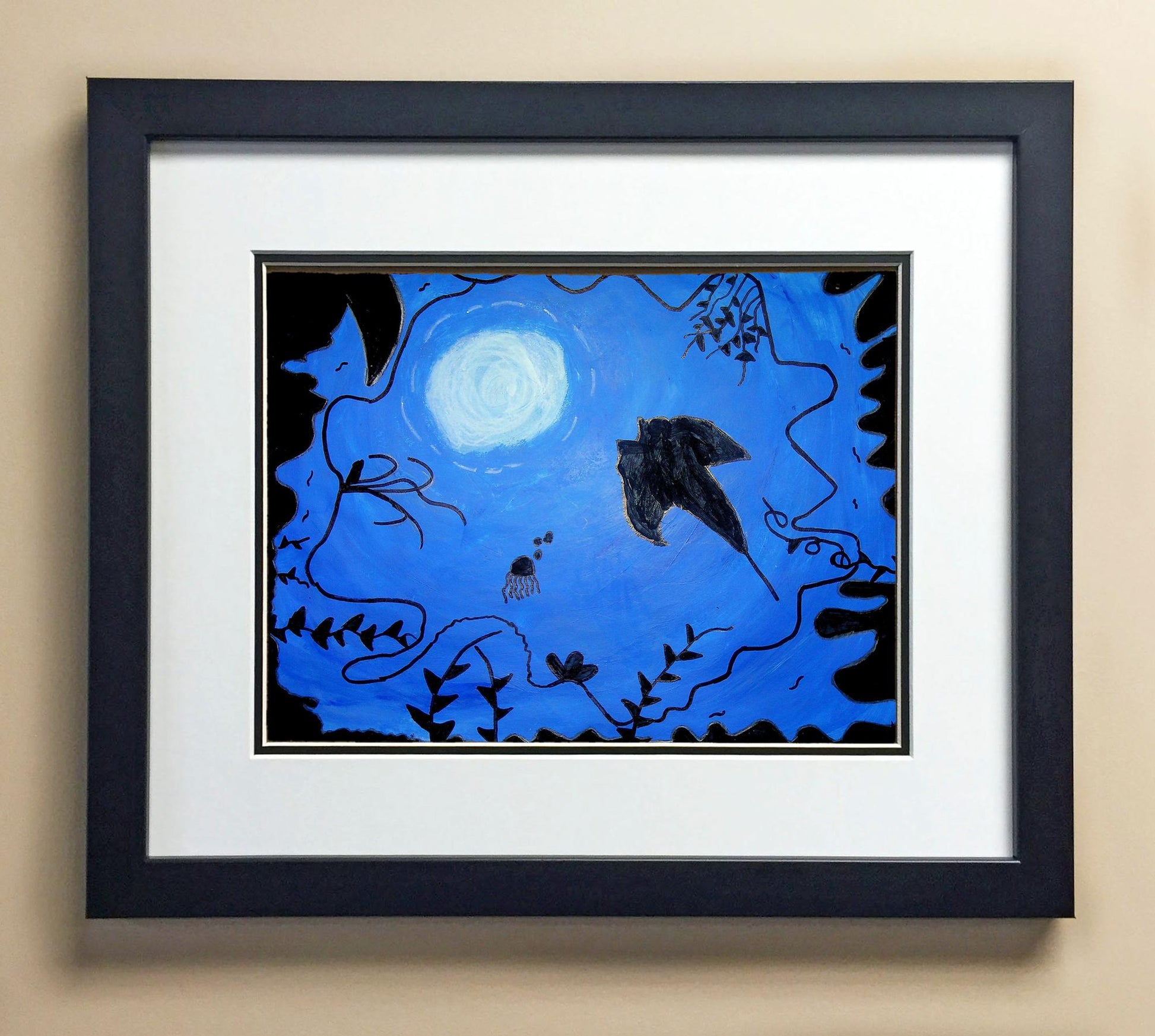 Included with the purchase is the Students Artwork, Frame, double matboard, shatter proof plexiglass, and a ready to hang backerboard with turnbuttons