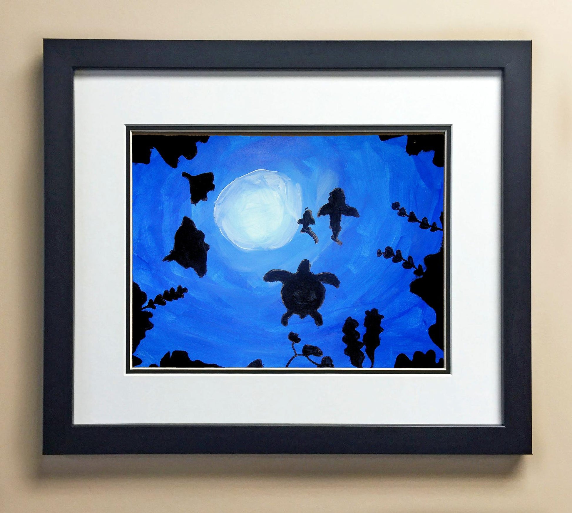 Included with the purchase is the Students Artwork, Frame, double matboard, shatter proof plexiglass, and a ready to hang backerboard with turnbuttons