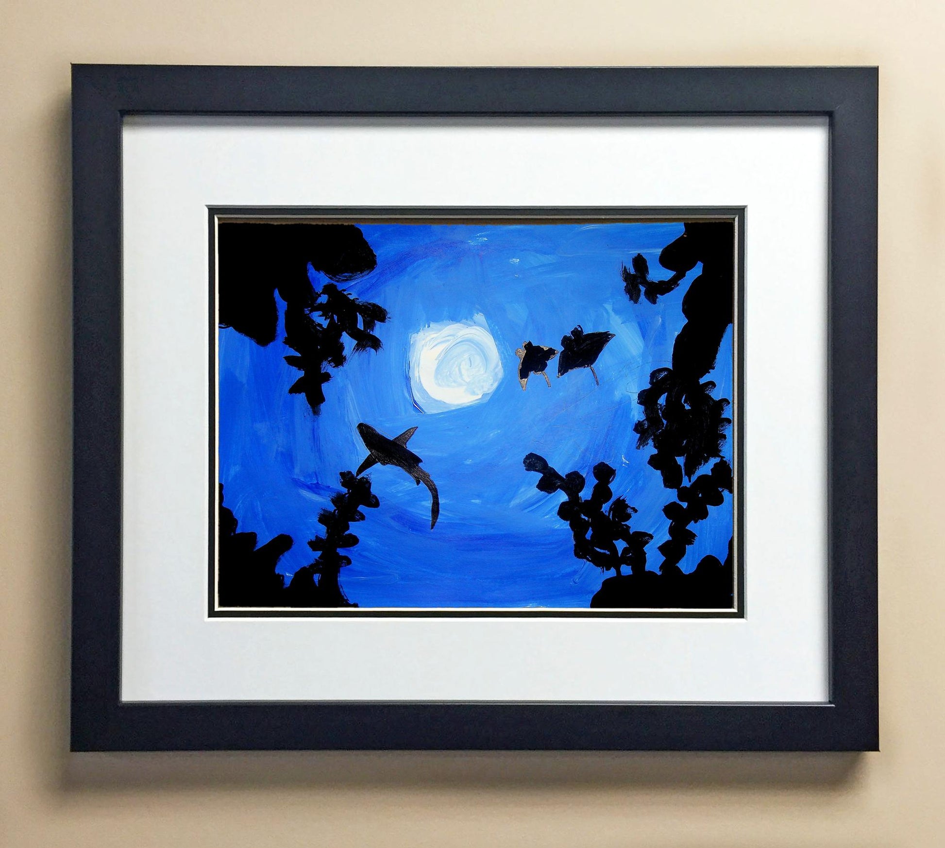 Included with the purchase is the Students Artwork, Frame, double matboard, shatter proof plexiglass, and a ready to hang backerboard with turnbuttons