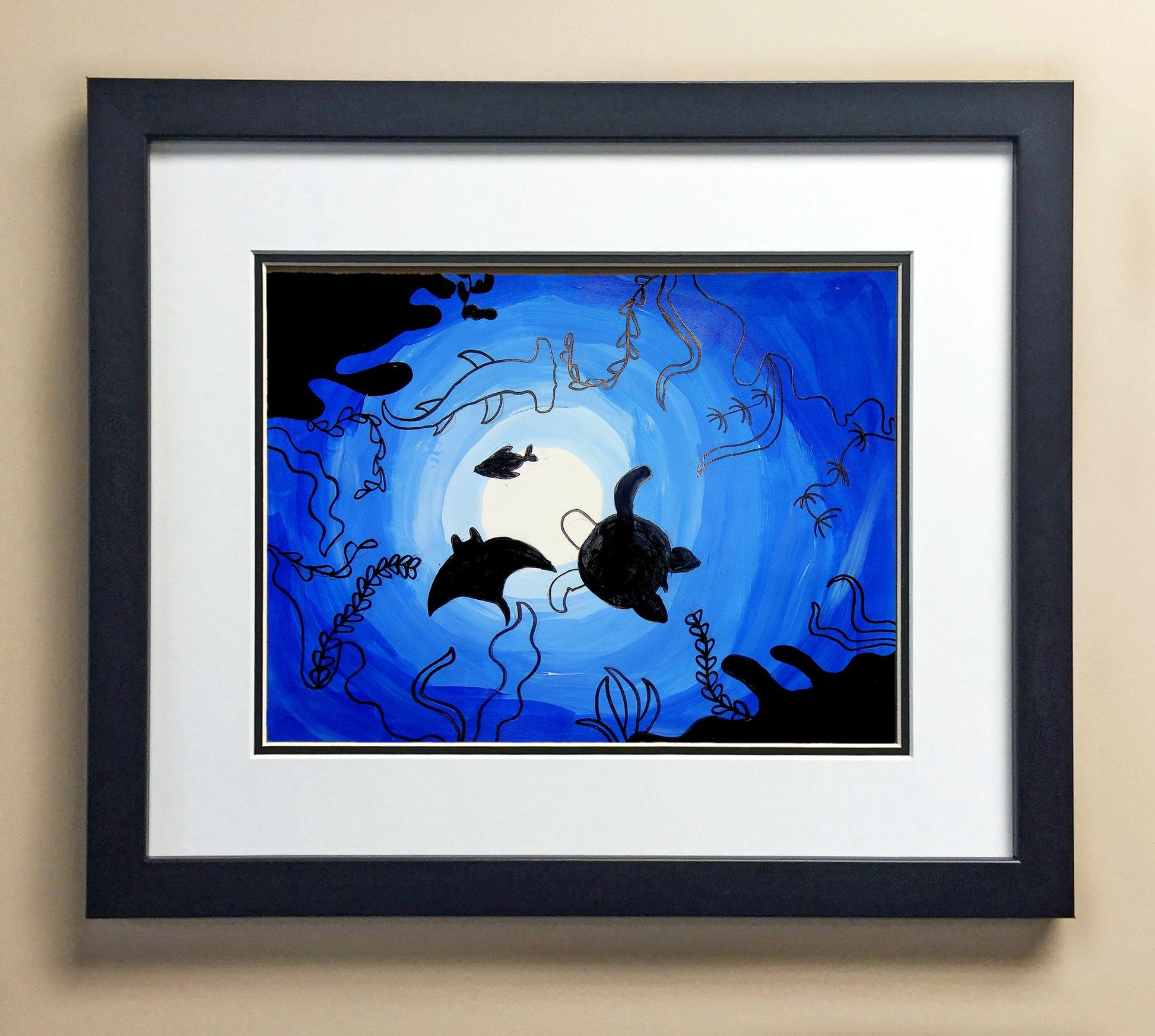 Included with the purchase is the Students Artwork, Frame, double matboard, shatter proof plexiglass, and a ready to hang backerboard with turnbuttons