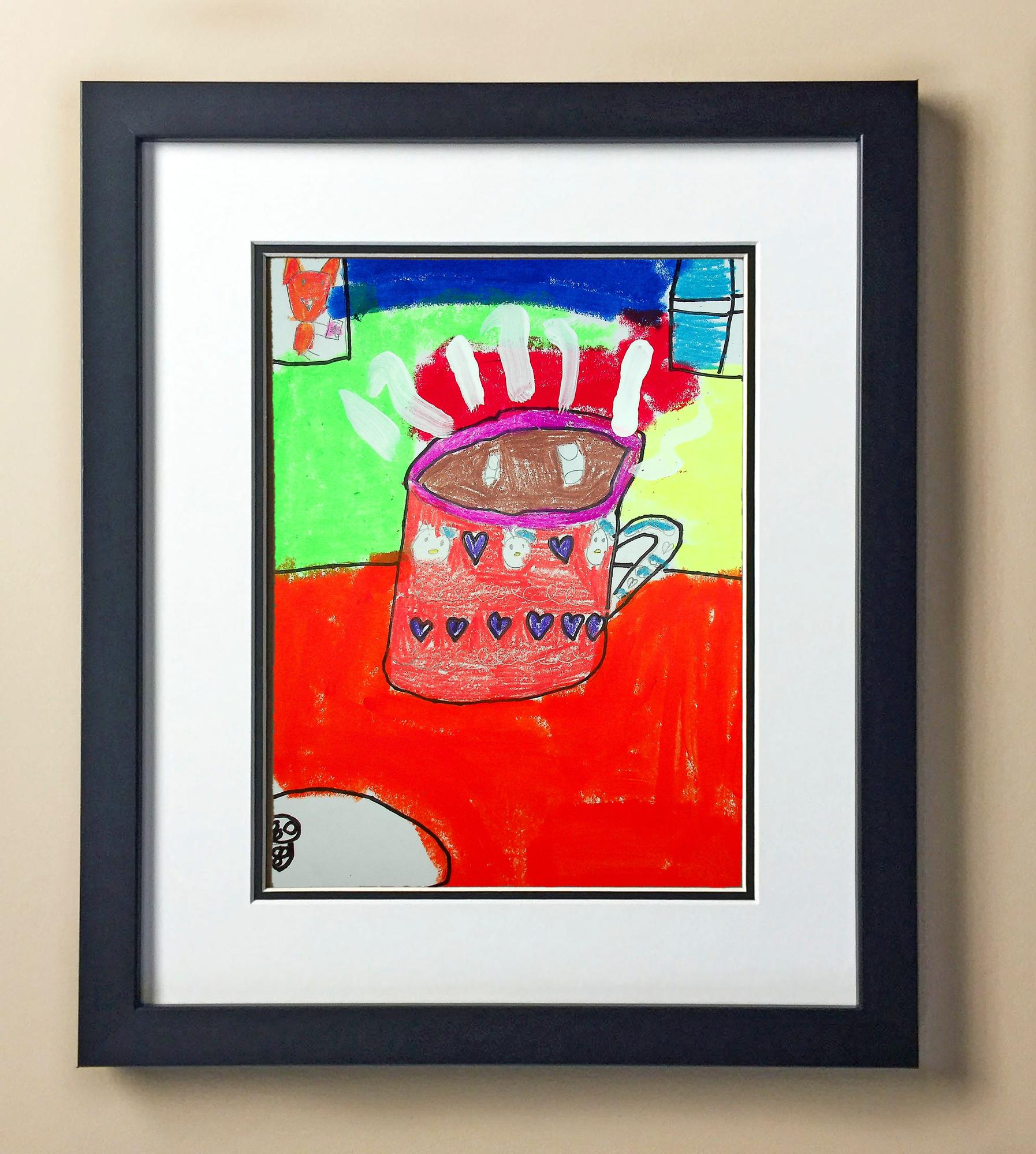 Included with the purchase is the Students Artwork, Frame, double matboard, shatter proof plexiglass, and a ready to hang backerboard with turnbuttons