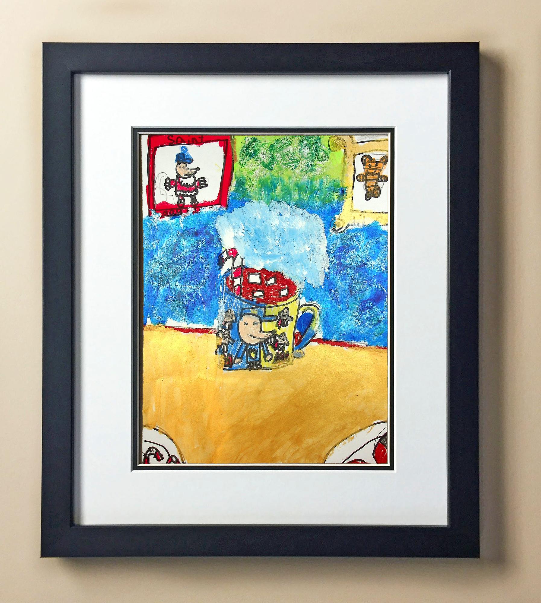 Included with the purchase is the Students Artwork, Frame, double matboard, shatter proof plexiglass, and a ready to hang backerboard with turnbuttons