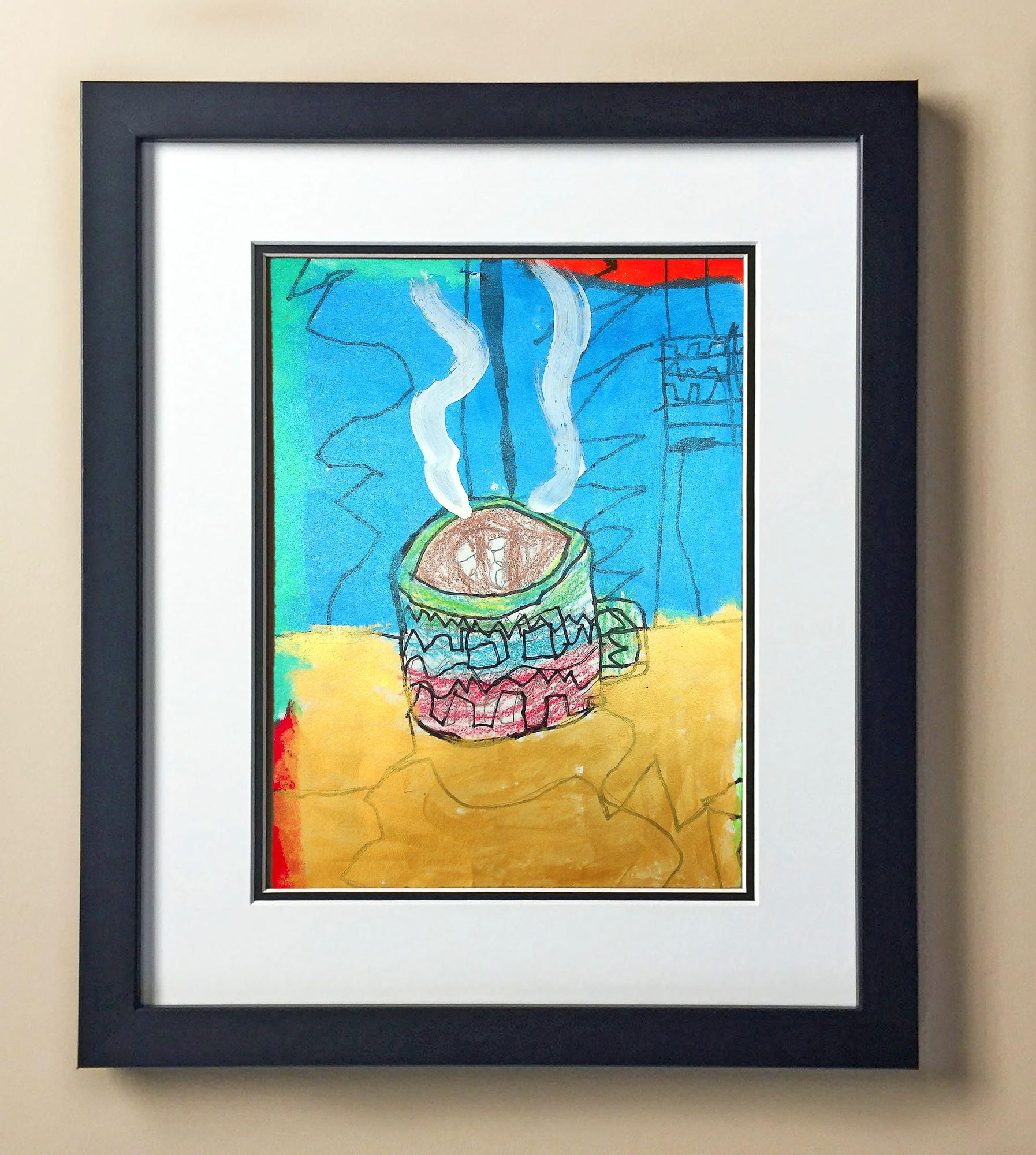 Included with the purchase is the Students Artwork, Frame, double matboard, shatter proof plexiglass, and a ready to hang backerboard with turnbuttons