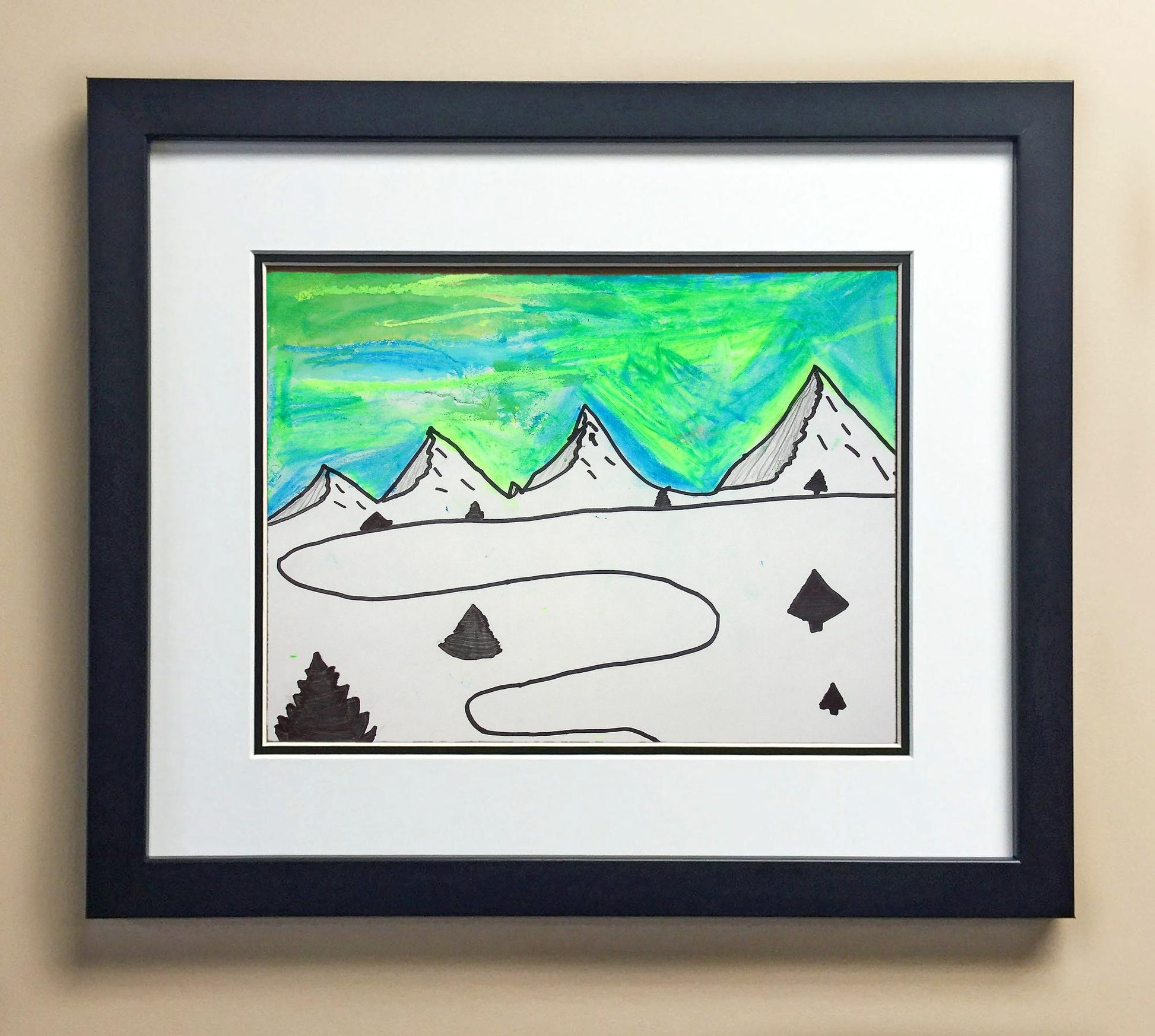 Included with the purchase is the Students Artwork, Frame, double matboard, shatter proof plexiglass, and a ready to hang backerboard with turnbuttons