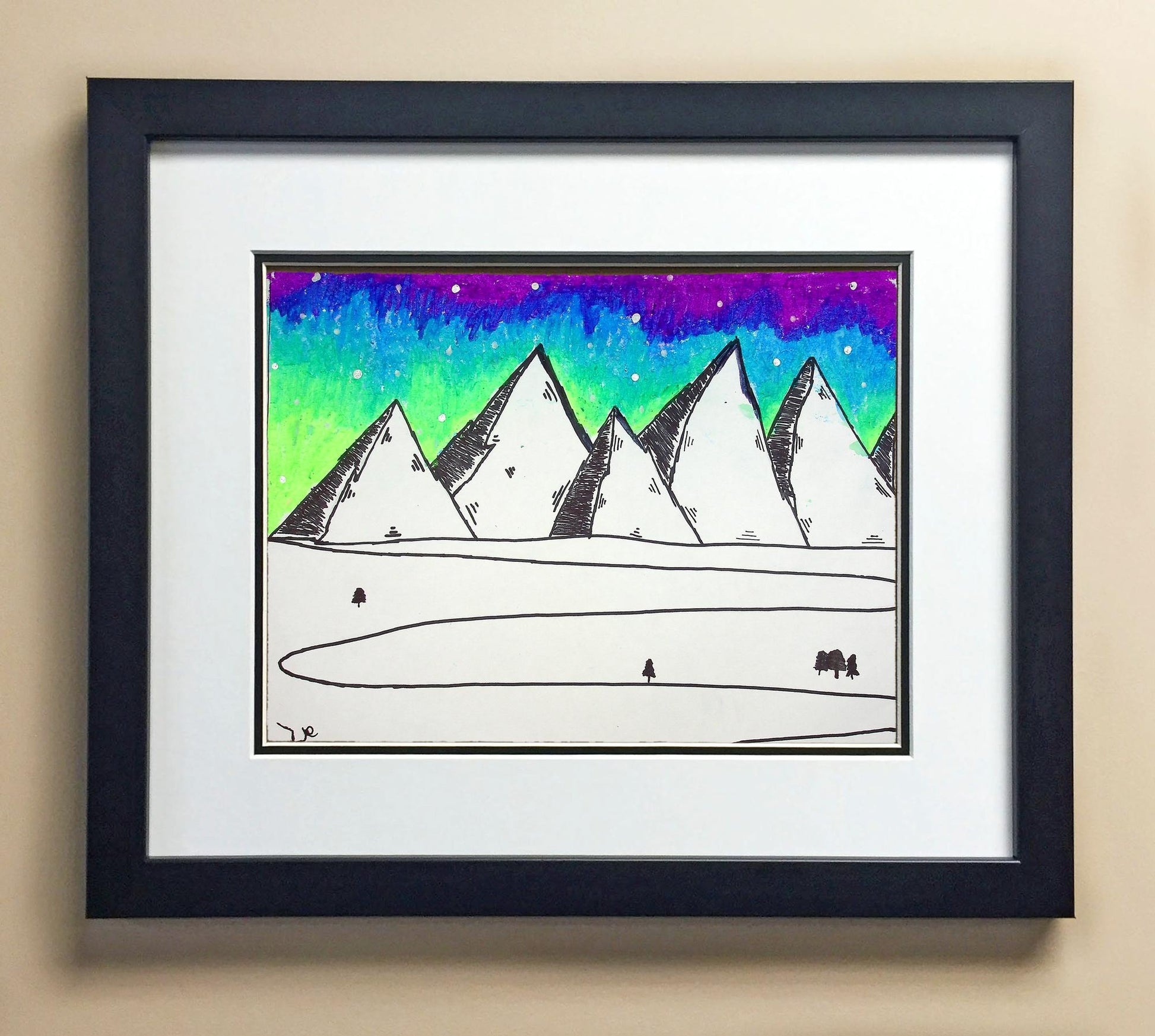 Included with the purchase is the Students Artwork, Frame, double matboard, shatter proof plexiglass, and a ready to hang backerboard with turnbuttons