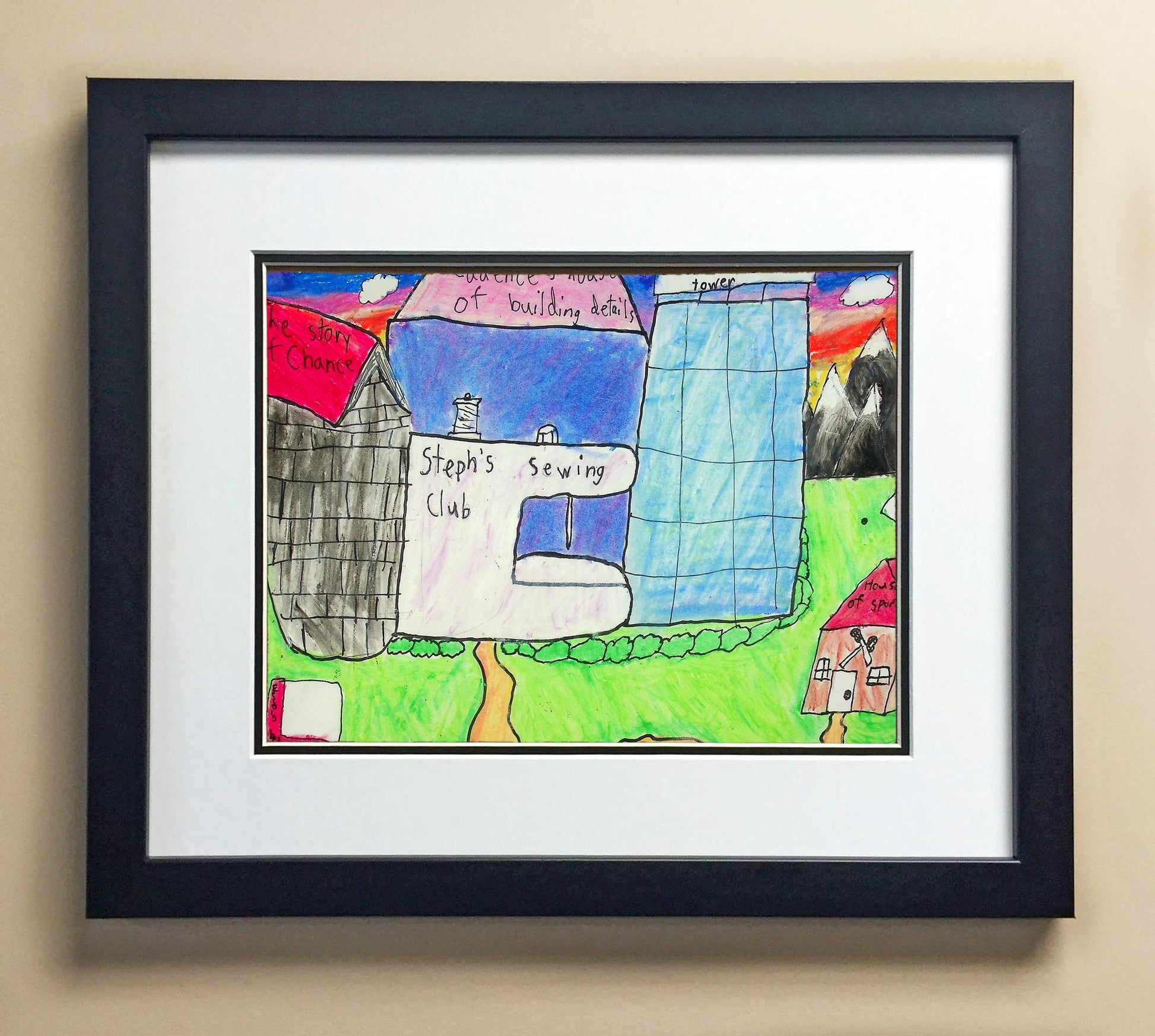 Included with the purchase is the Students Artwork, Frame, double matboard, shatter proof plexiglass, and a ready to hang backerboard with turnbuttons