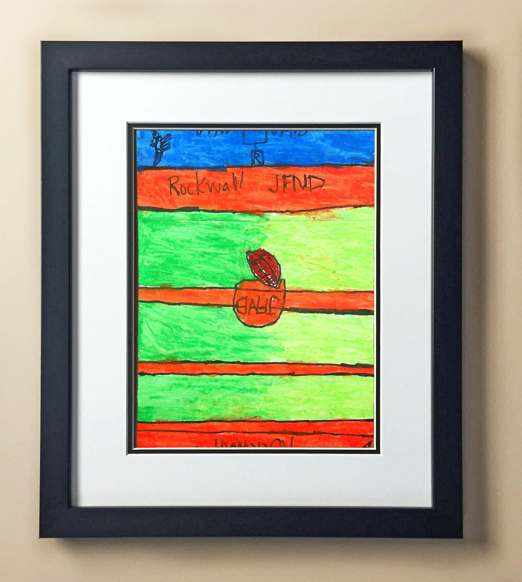 Included with the purchase is the Students Artwork, Frame, double matboard, shatter proof plexiglass, and a ready to hang backerboard with turnbuttons