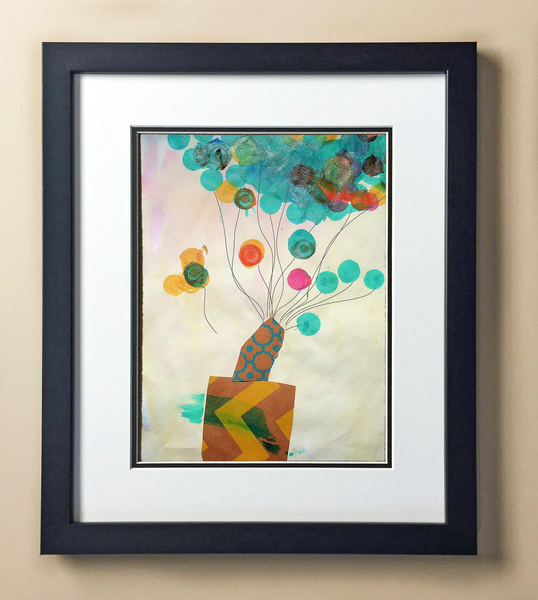 Included with the purchase is the Students Artwork, Frame, double matboard, shatter proof plexiglass, and a ready to hang backerboard with turnbuttons